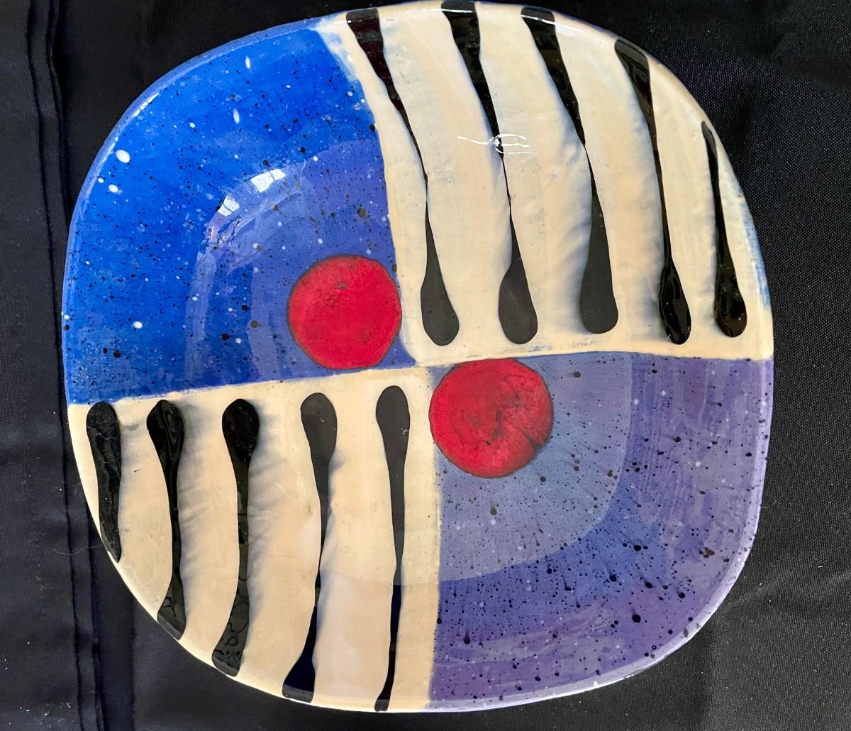 Colors are Blue, Black White, Red. Artist Unknown. 8.5x8