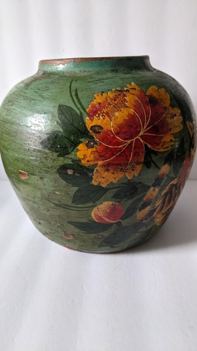 Asian Handpainted Clay Pot