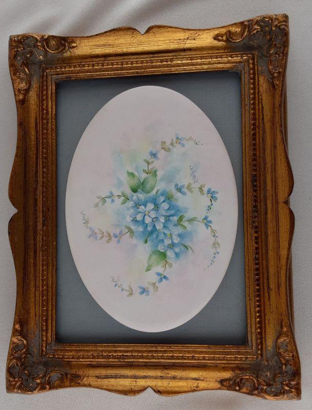 Handpainted Floral China Plaque in Frame