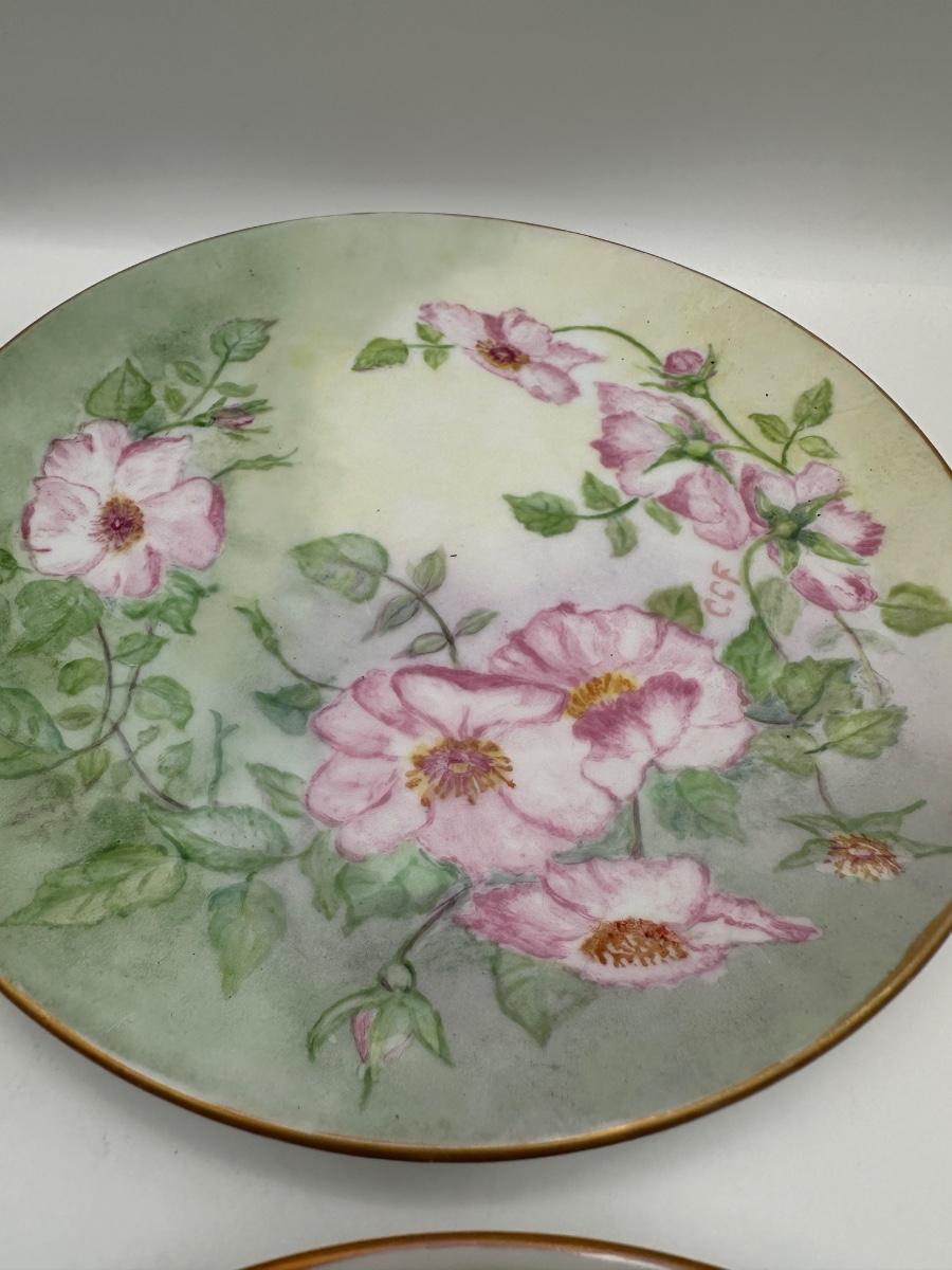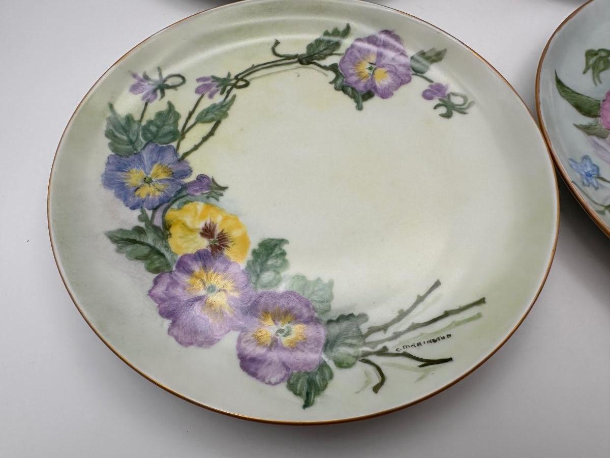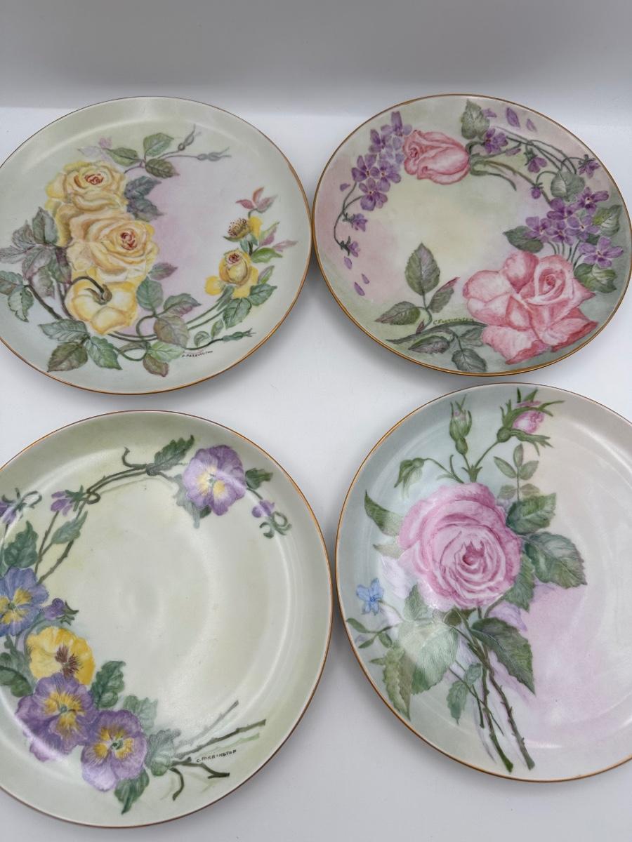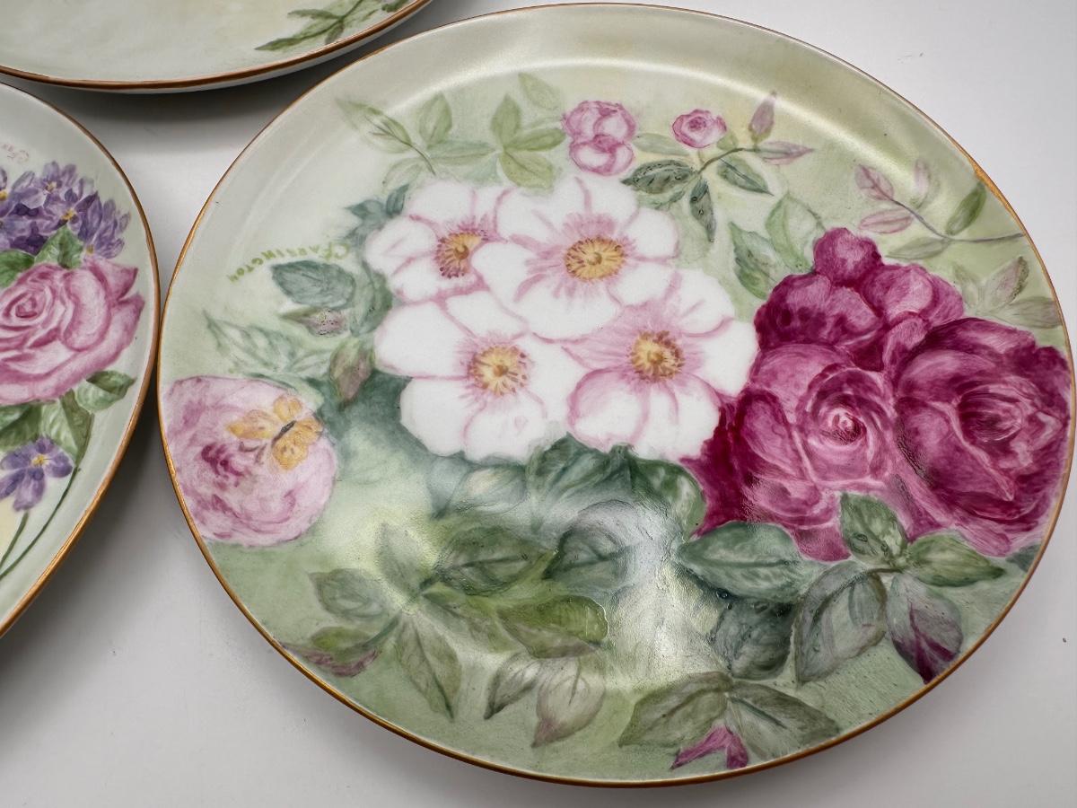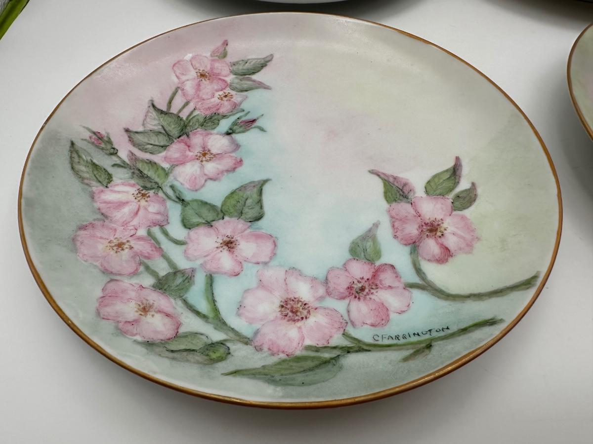 Set of 15 Hand-Painted Floral Porcelain Plates – Signed C. Farrington