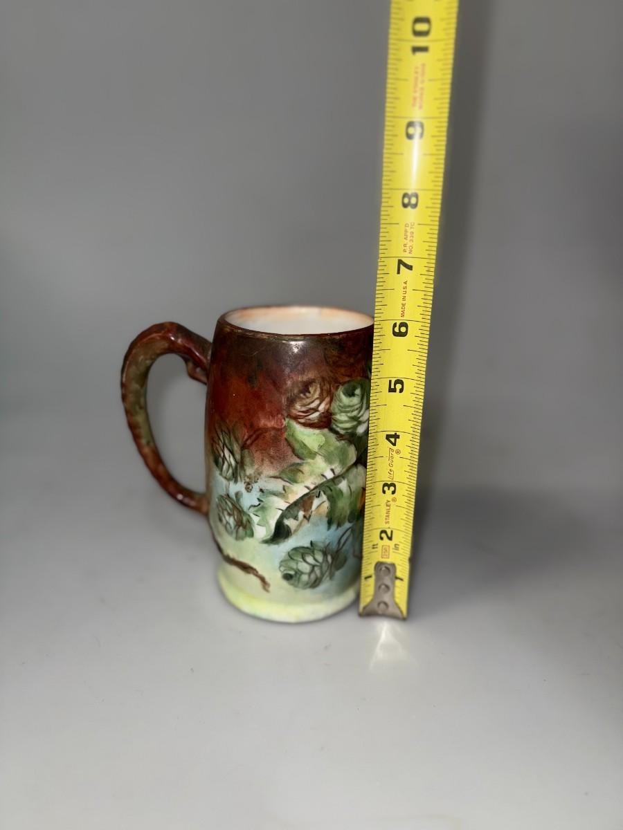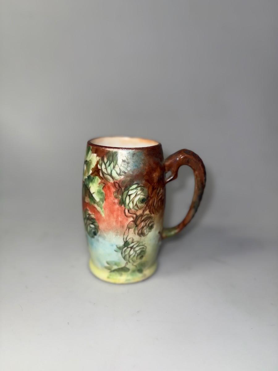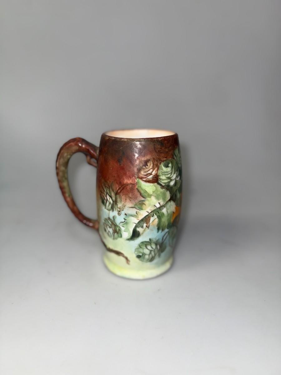 "Handled Tankard" Dragon Handle Green and brown mug with flowers by Jean Pouyat Limoges