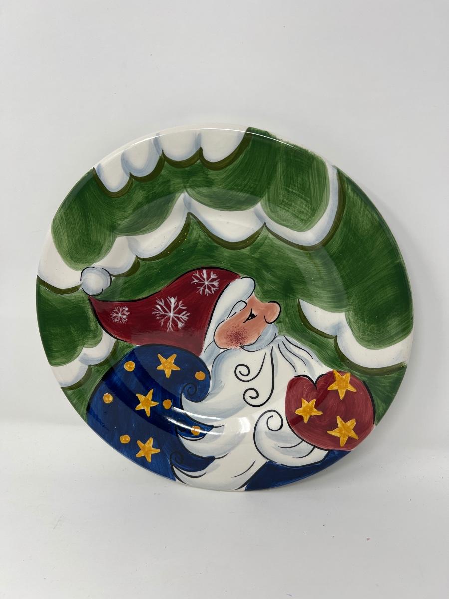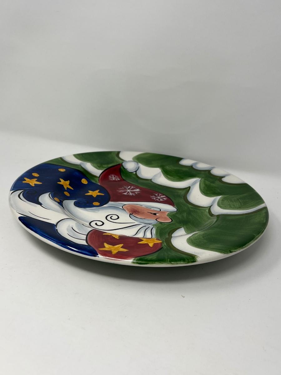 Tabletop Unlimited Jolly Santa Ceramic Plate. Handpainted individually. Great serving plate. 11.25” round with rim.
