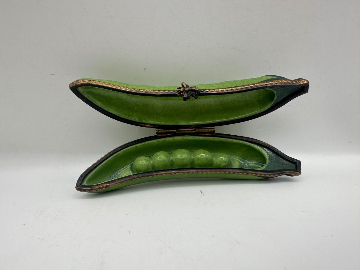 Hand-Painted Limoges France Pea Pod Porcelain Trinket Box