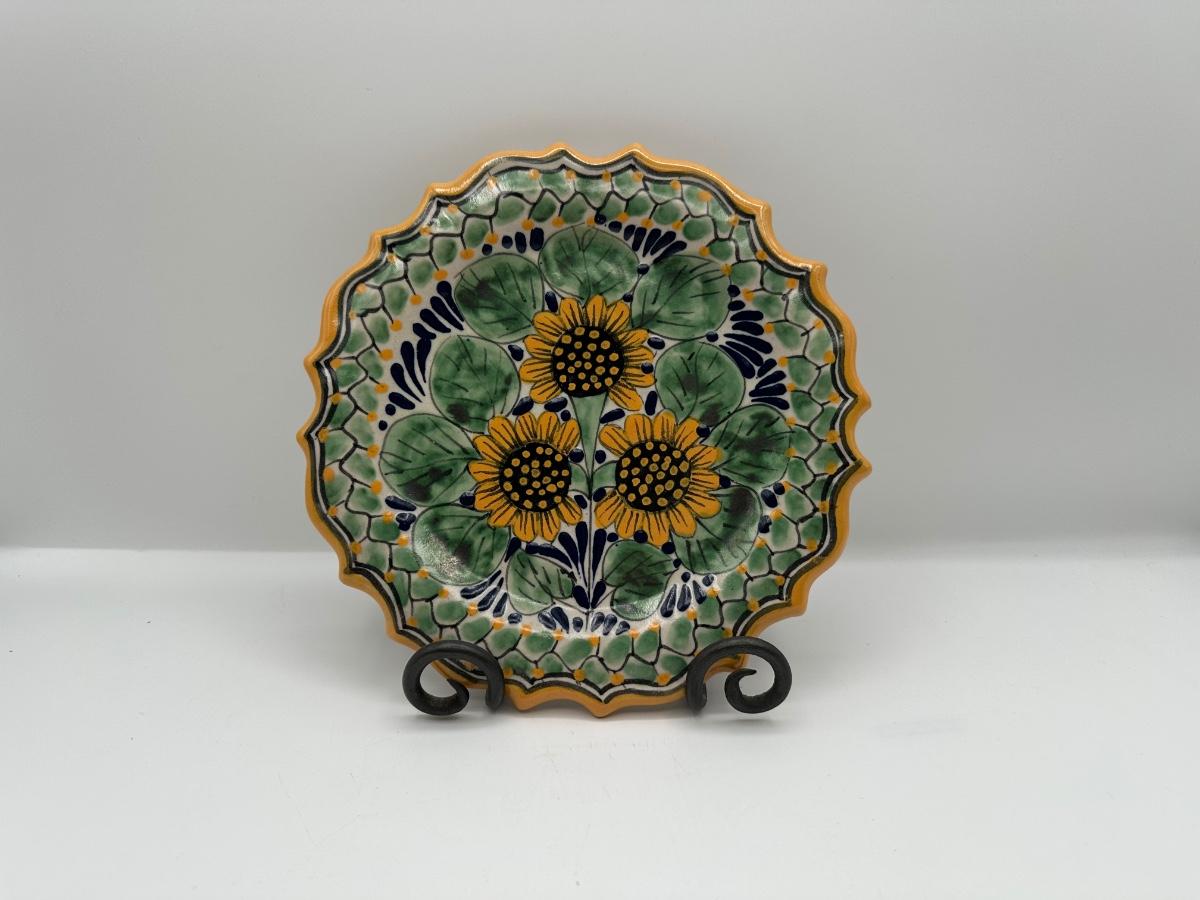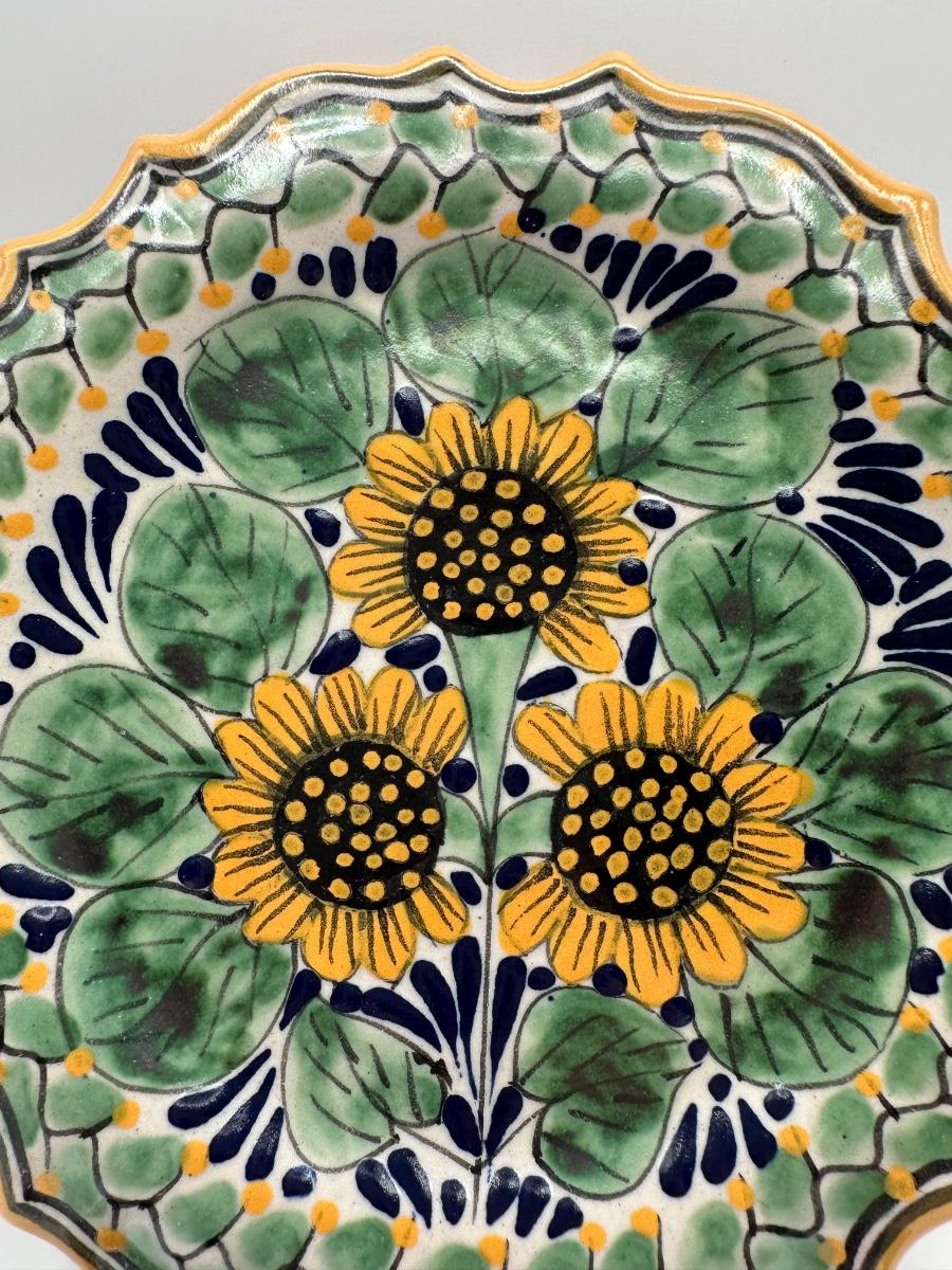 Hand-Painted Talavera Pottery Plate – Arte Juarez, Sunflower Design.