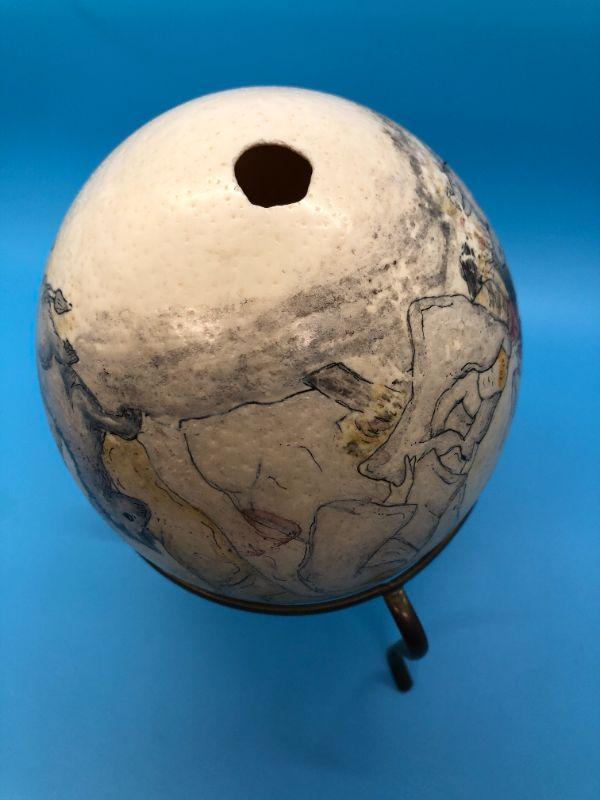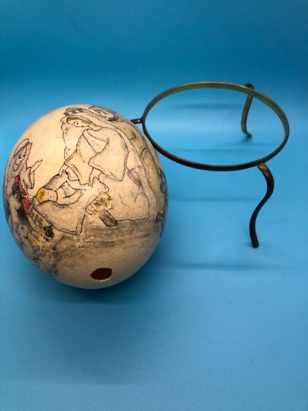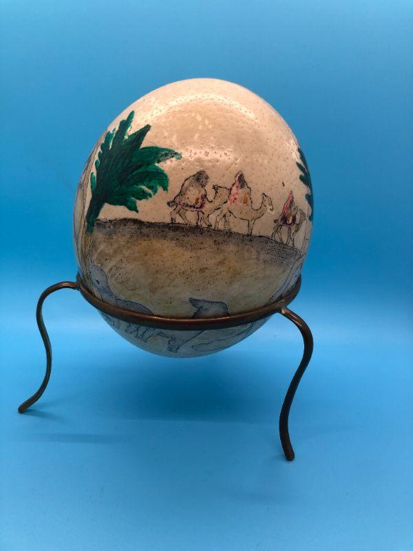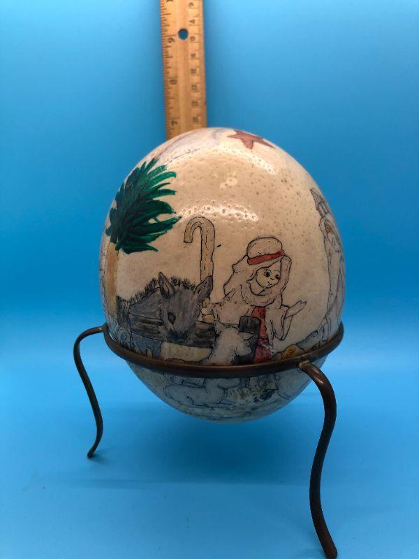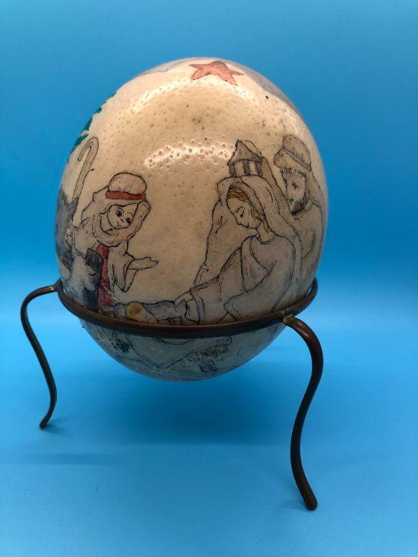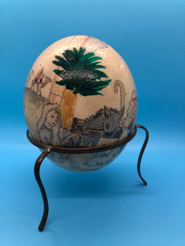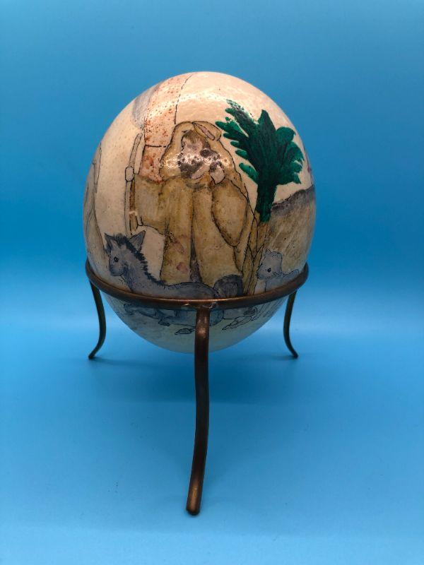 Hand-Painted Ostrich Egg with stand - Nativity theme