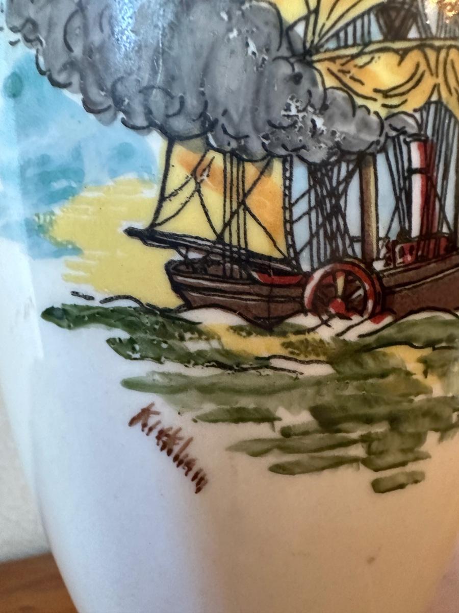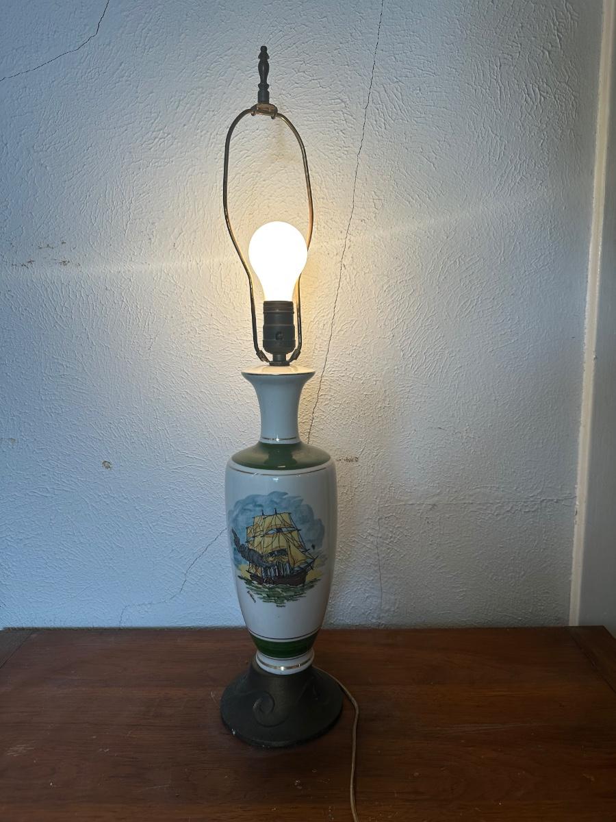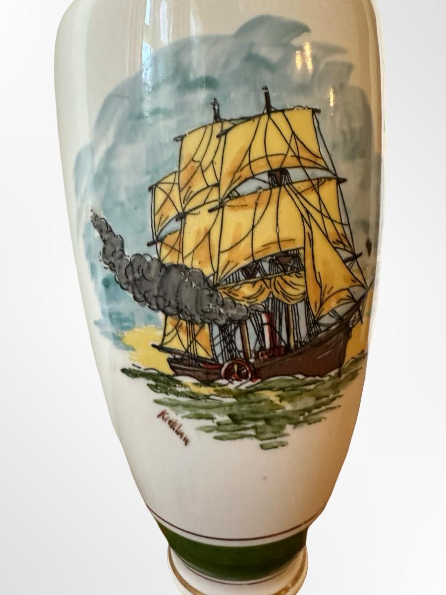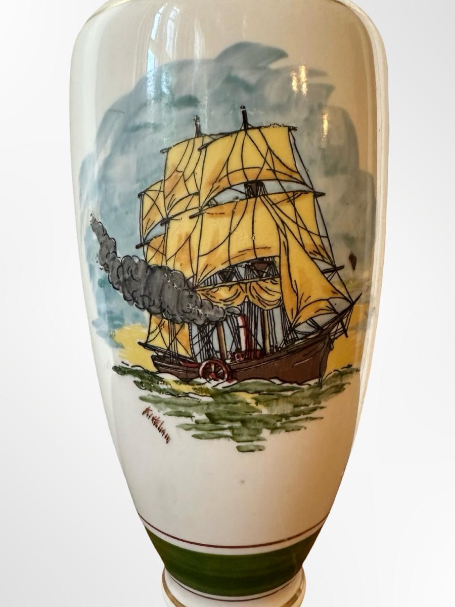 Hand-Painted Table Lamp with Sailing Ship Scene