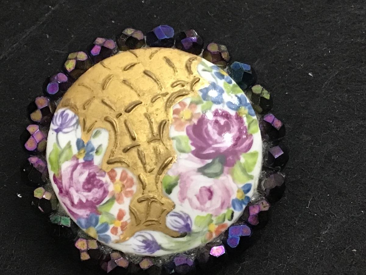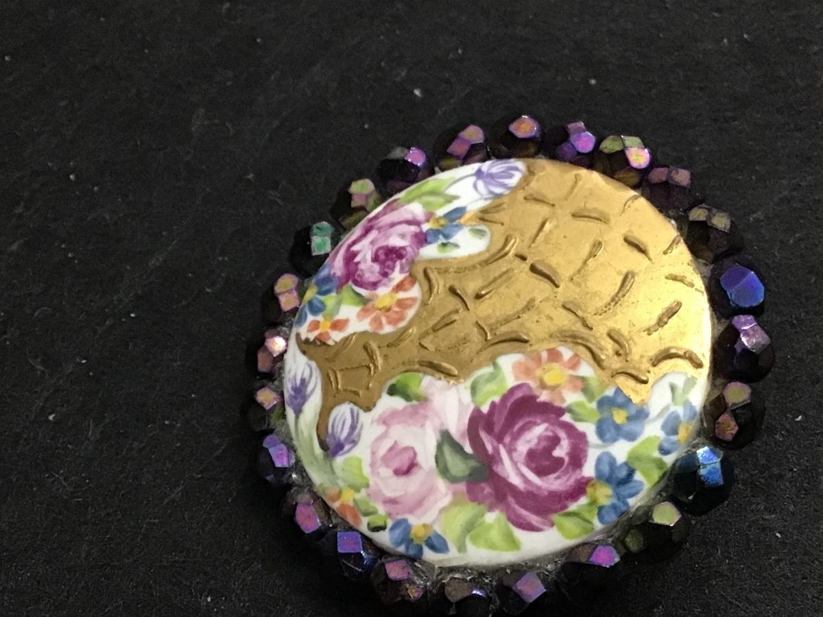 Handpainted Vintage Brooch Gold Gilded
