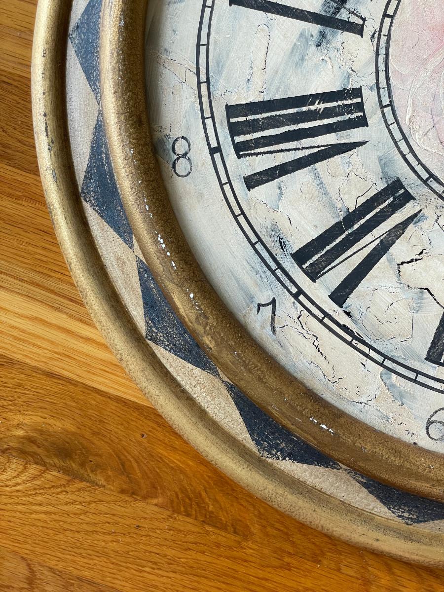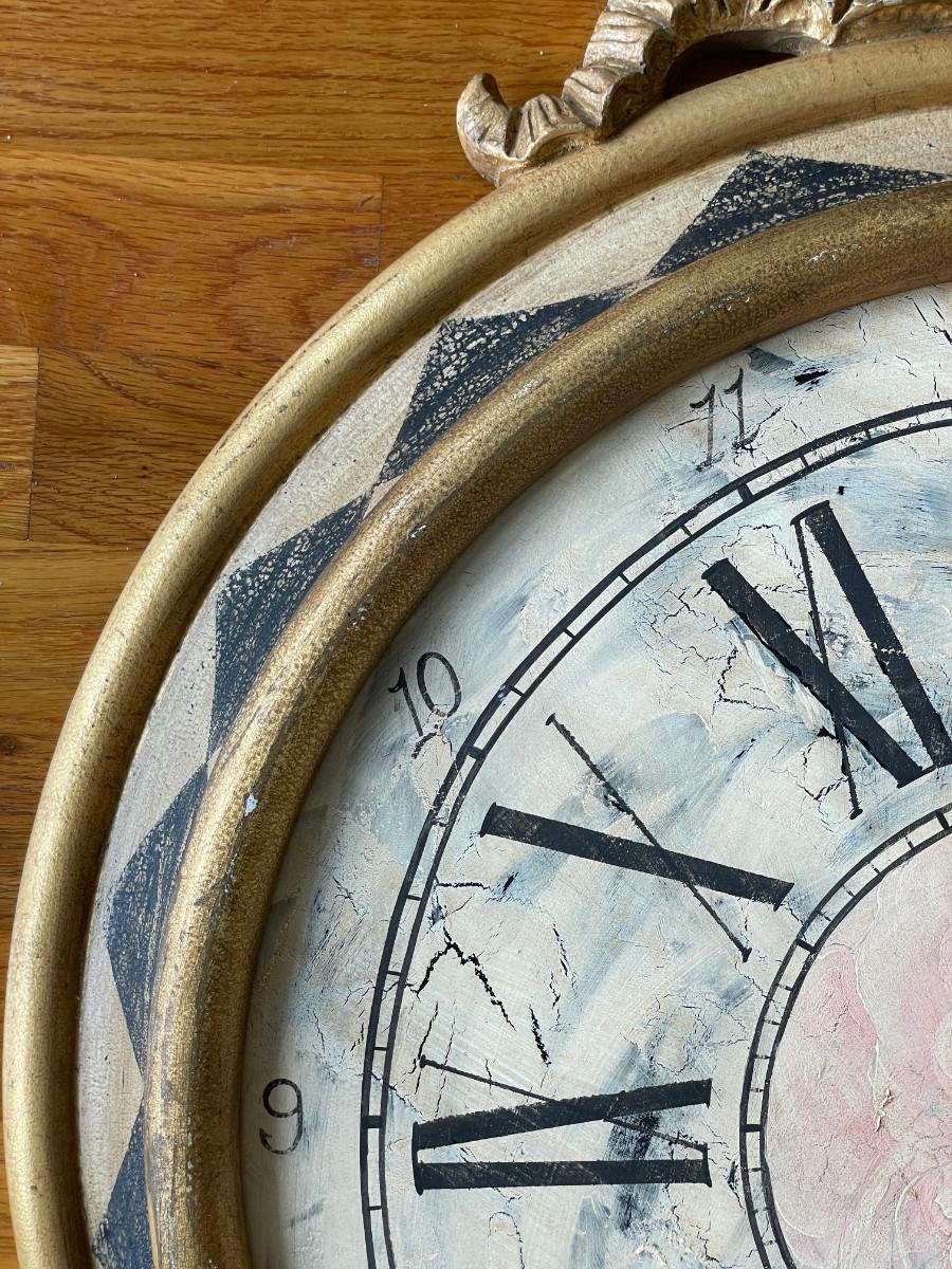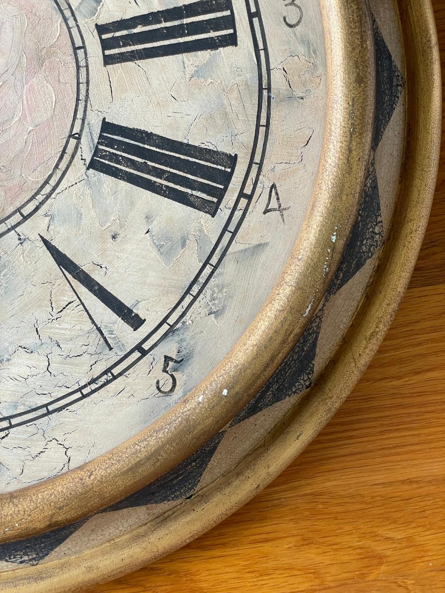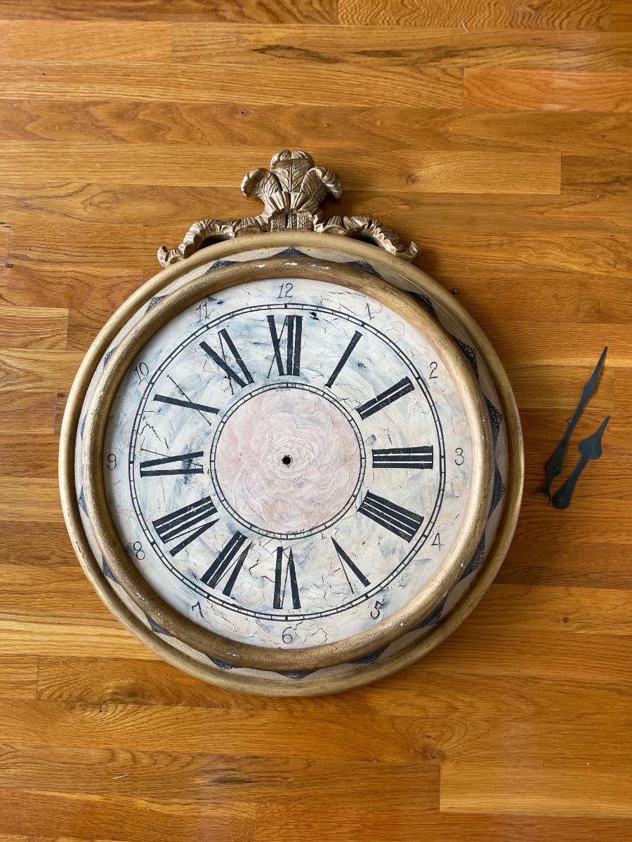 Hand-painted by owner who was a professional painter. Approximately 27.5” tall. Needs clock mechanism, but comes with clock hands. See photos for condition.