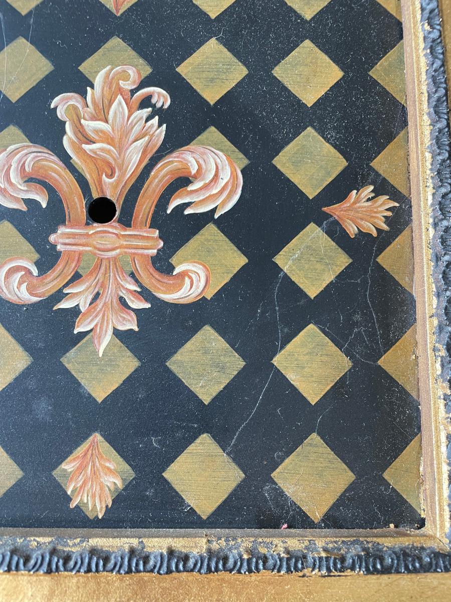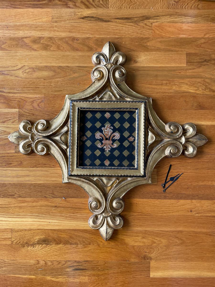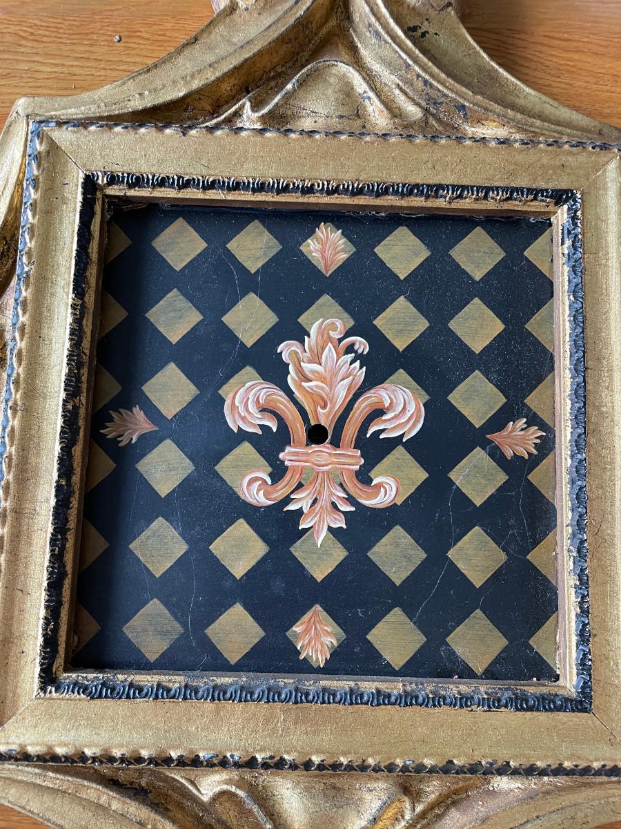 Hand-painted by owner who was a professional painter. Approximately 29.5” tall. Needs clock mechanism, but comes with clock hands. See photos for condition.