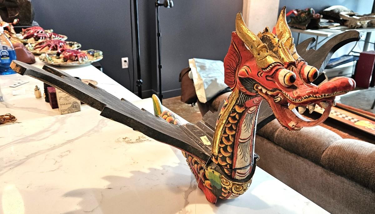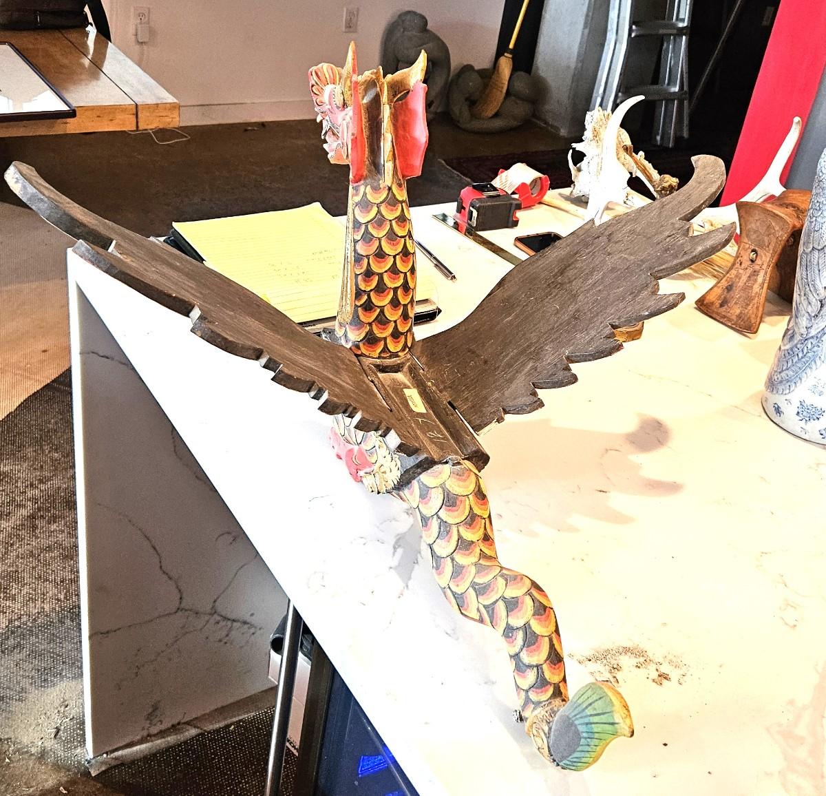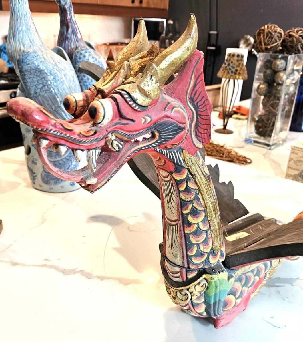 Hand-Painted Wood Carved Japanese Dragon
