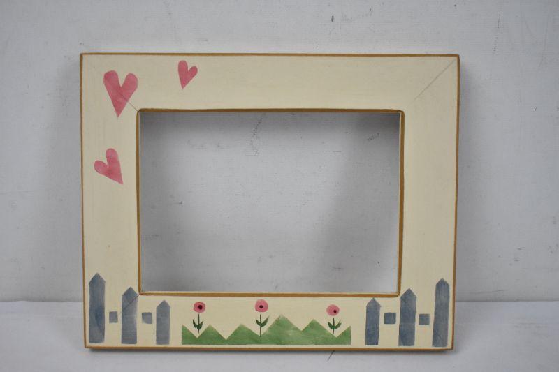 Handpainted Wooden Frame: Hearts/Fence/Flower - New