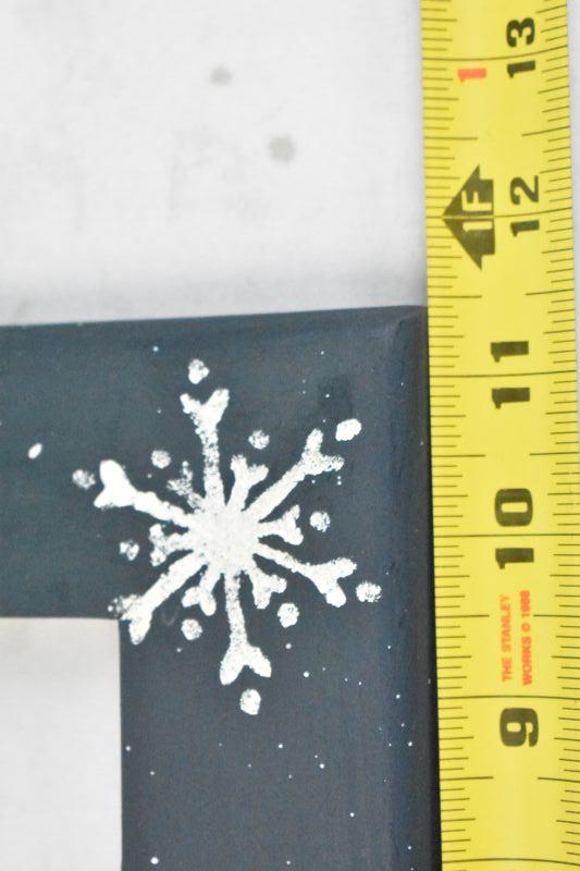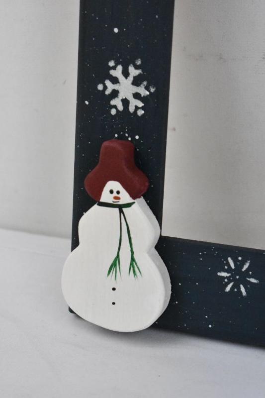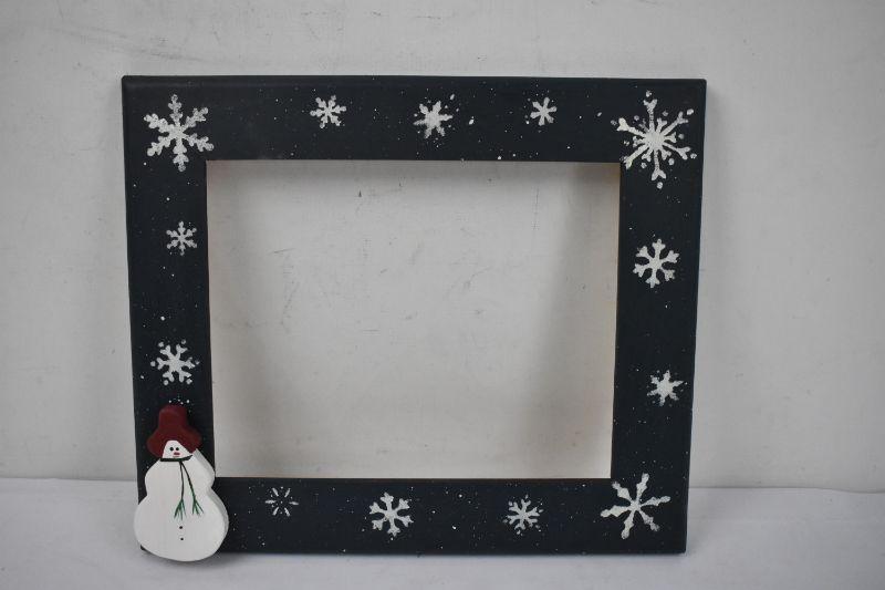 Handpainted Wooden Frame: Navy w/ Snowflakes & Snowman - New