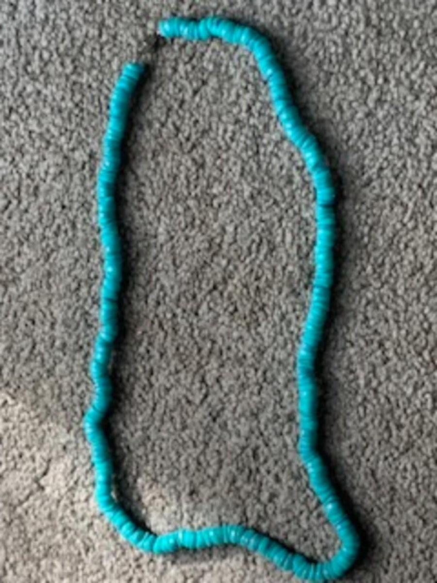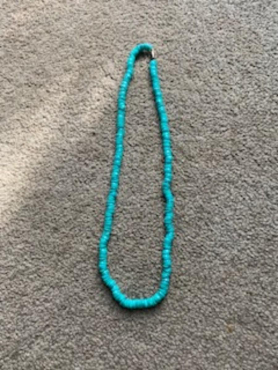 Strand of turquoise-colored beads, this necklace offers a pop of color and vintage charm.