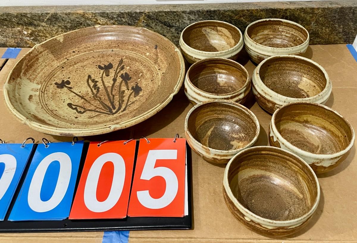 Hand-thrown 7pc stoneware bowl set + platter