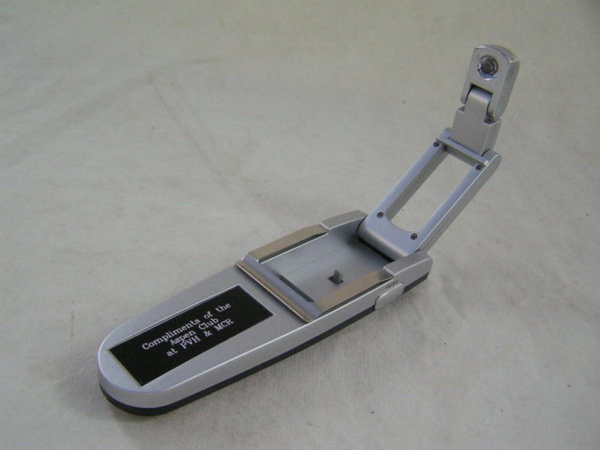 Handy little clip-on book light. Folds away for storage. Pops up and turns on w/ single button. Clips onto book cover. LED light. Needs batteries, NOT tested. Looks like NIB.