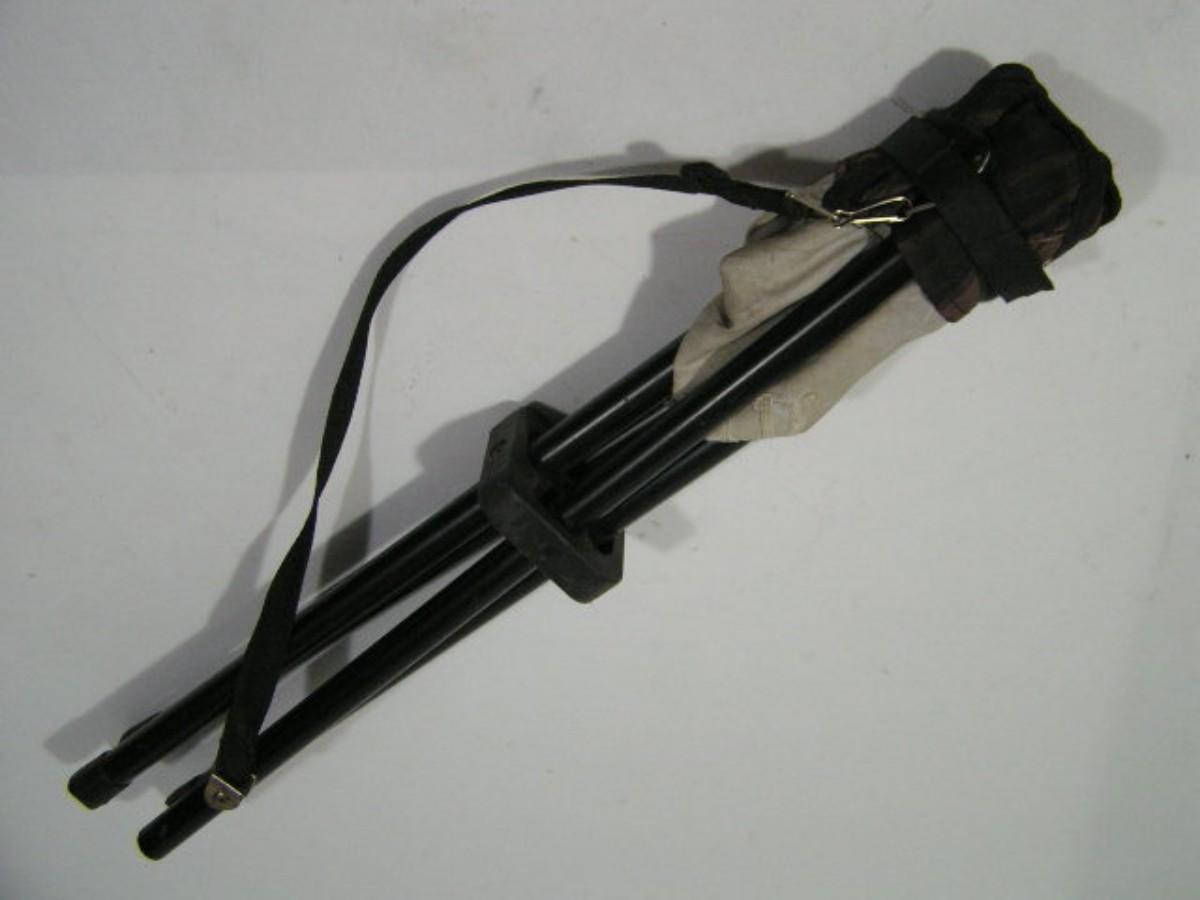 Handy little fishermans' seat or camp seat. About 17” tall w/12”x12” seat area and about 23” long folded. Light weight w/ carry strap, Velcro tie strap.