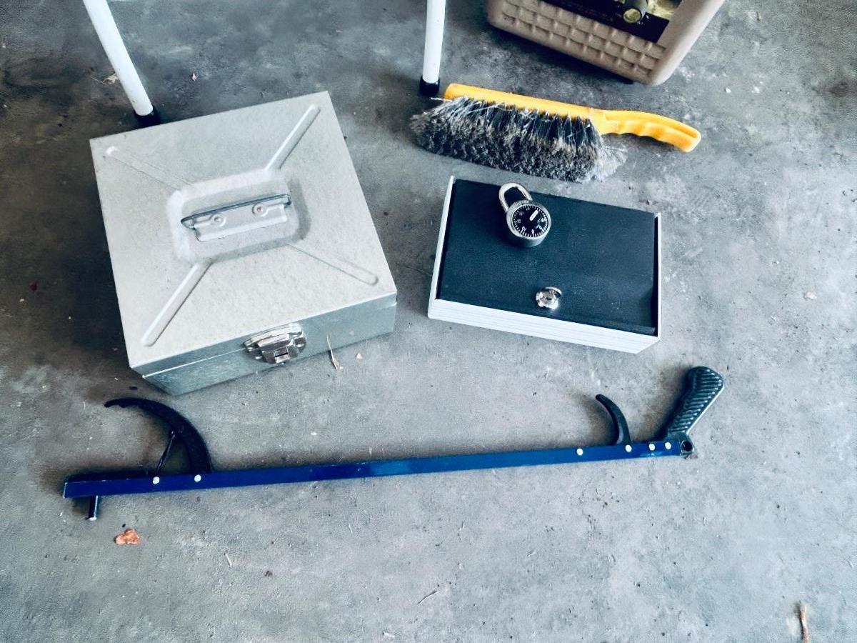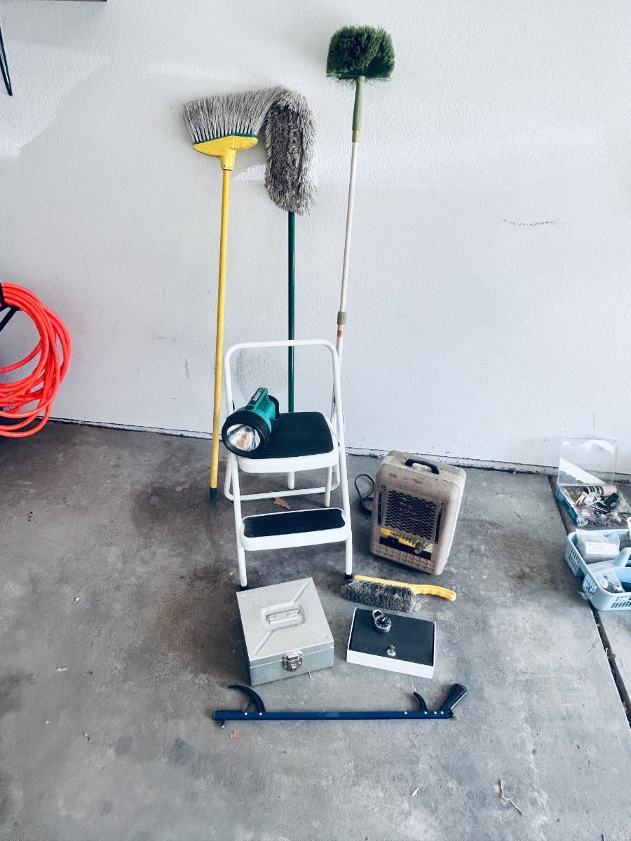 HANDY LITTLE STEP STOOL, CASH LOCK BOXES, HEATER AND MORE