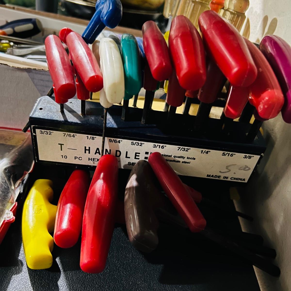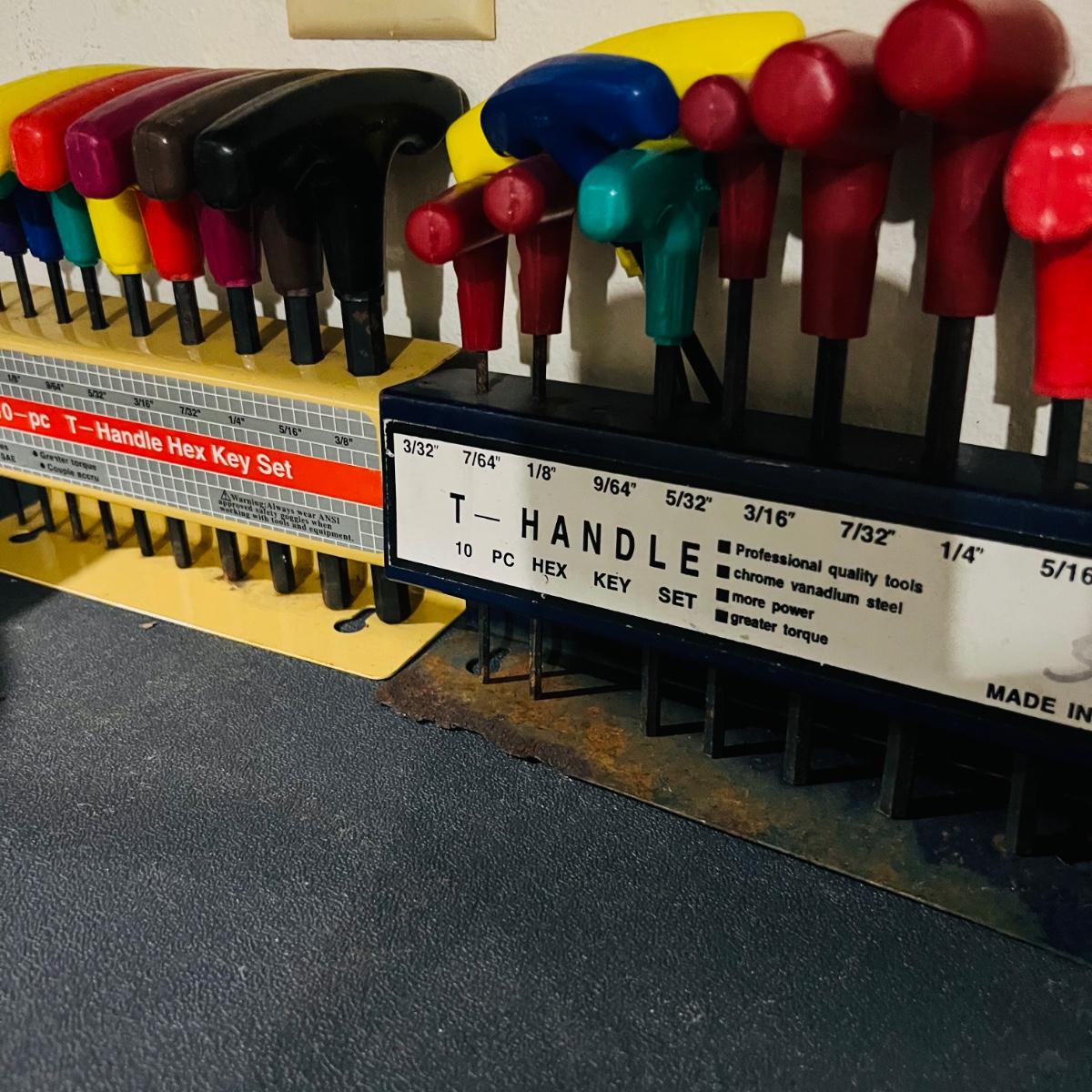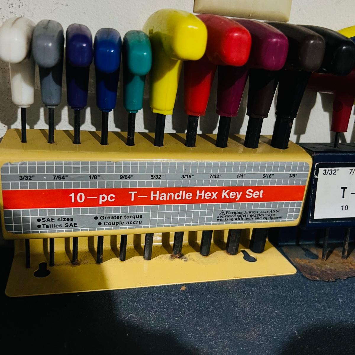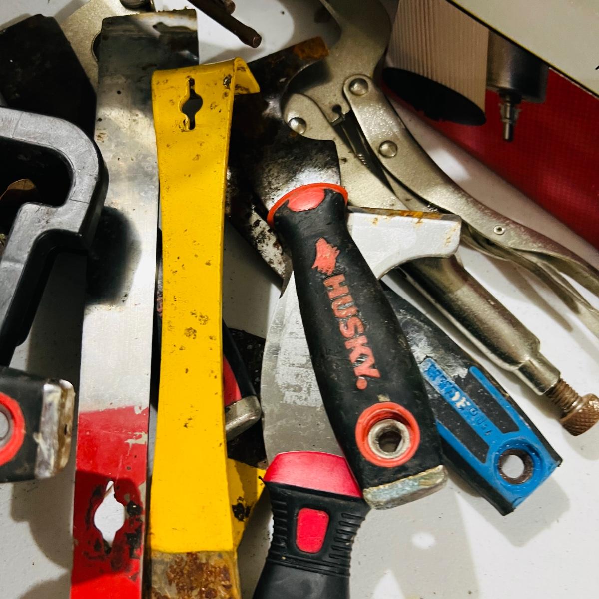Lot includes a large variety of tools including a Husky screwdriver set, clamps, vices, wrenches, T-Handle Hex Key Sets and much more.