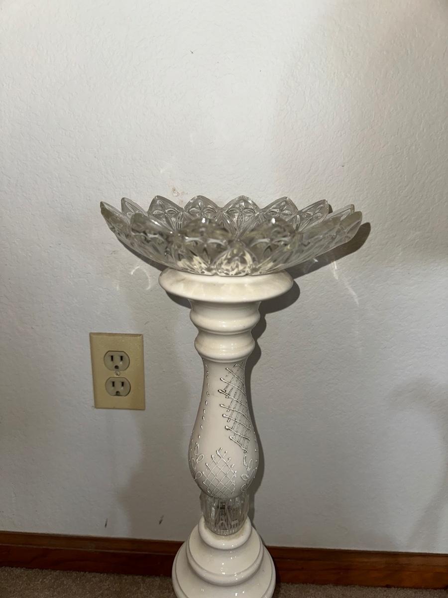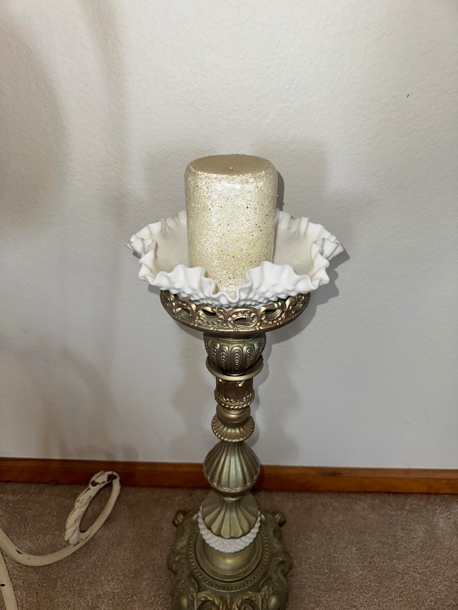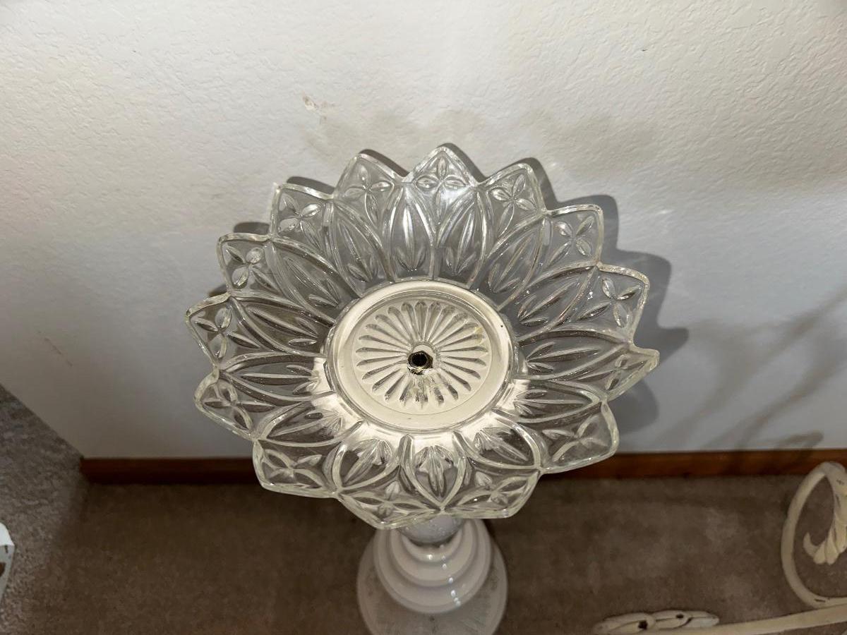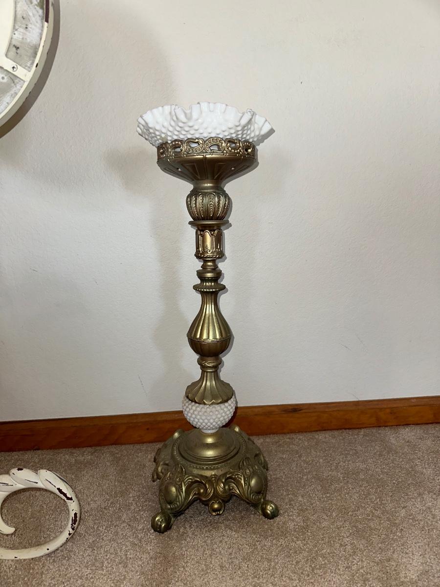 HANGING CLOCK ON AN IRON FRAME AND 2 FLOOR PILLAR CANDLE HOLDERS