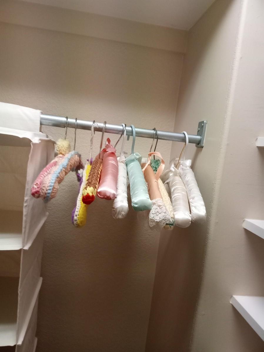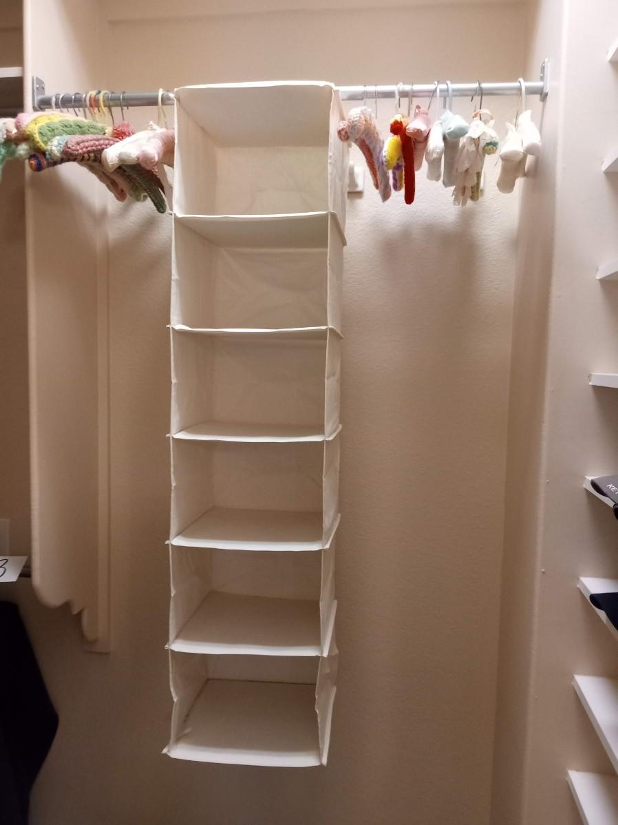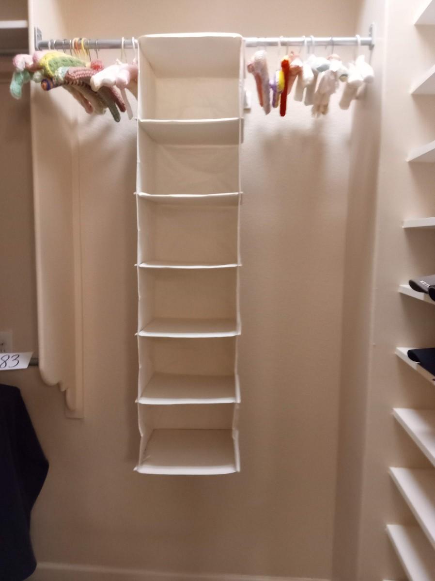 THE ORGANIZER VELCROS ONTO ANY CLOTHES ROD IN YOUR CLOSET