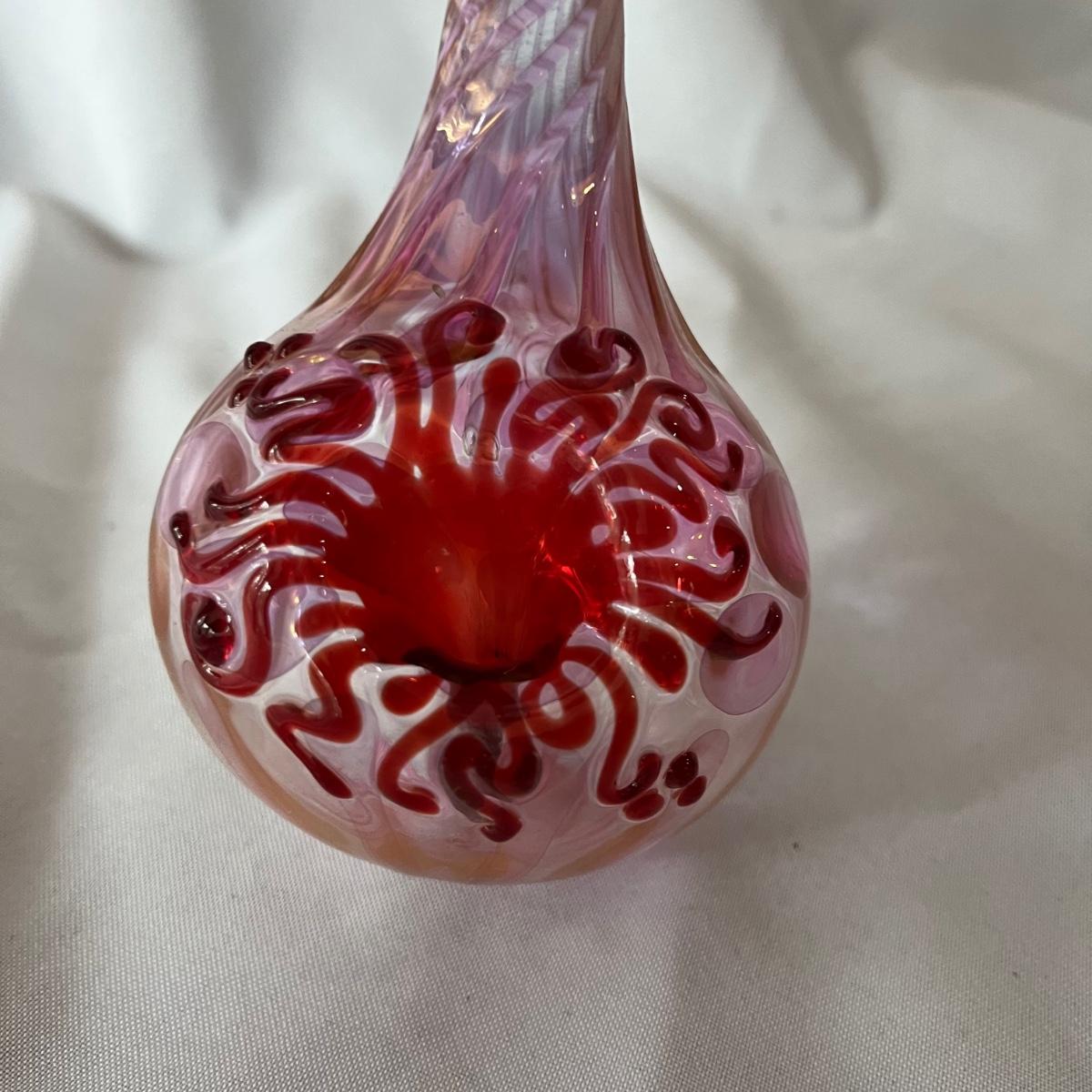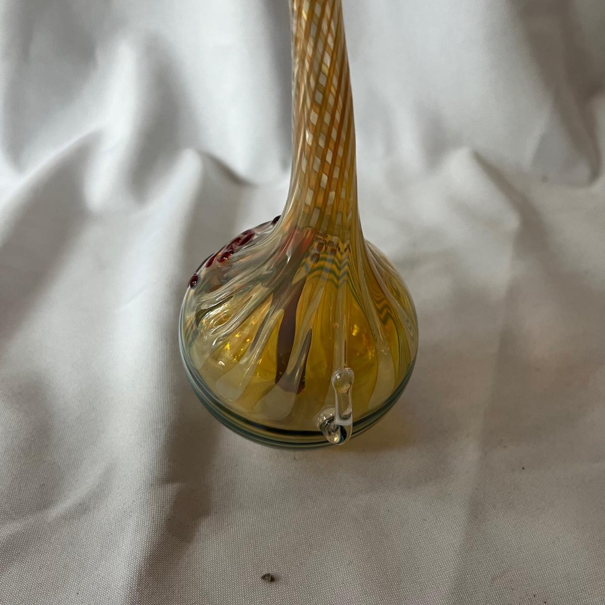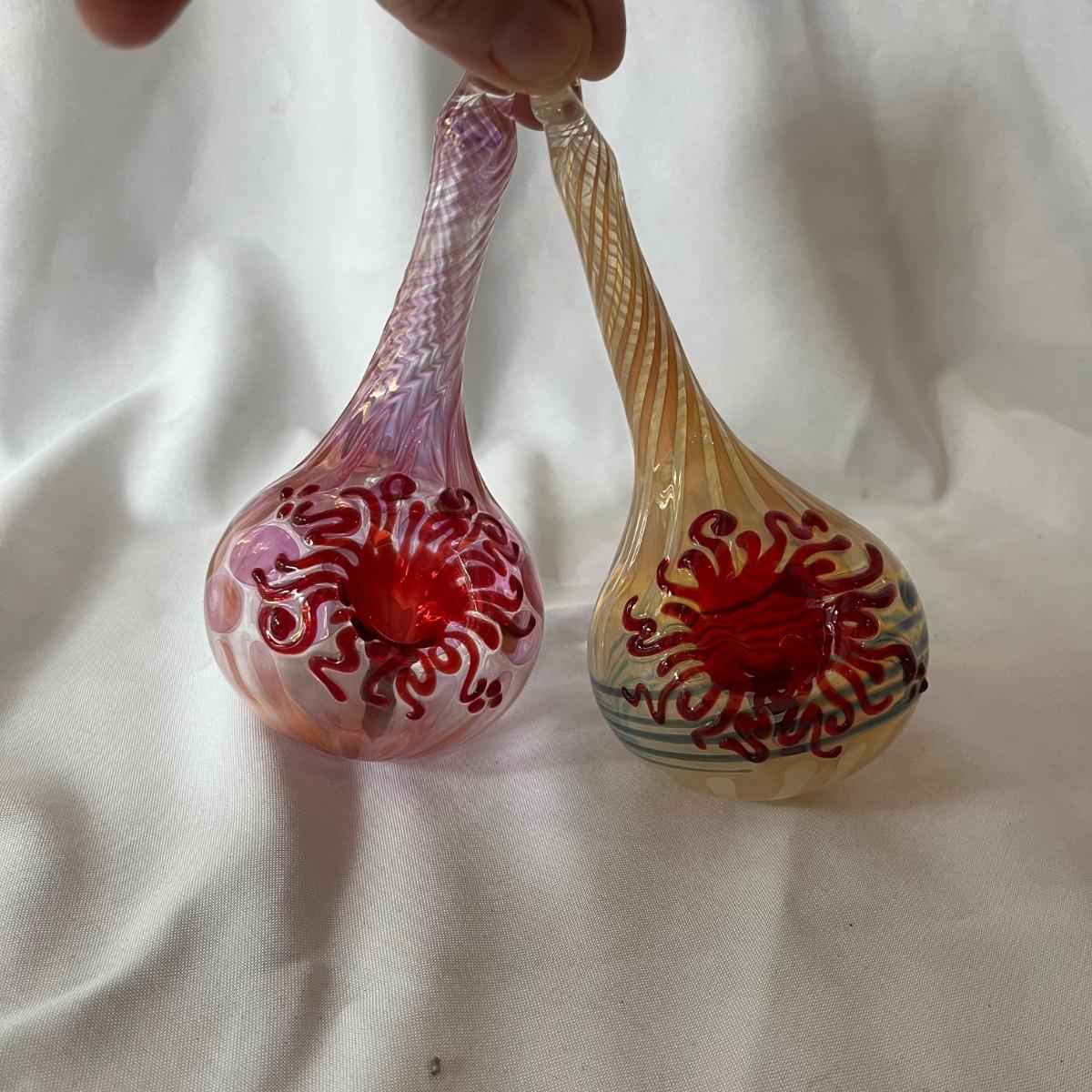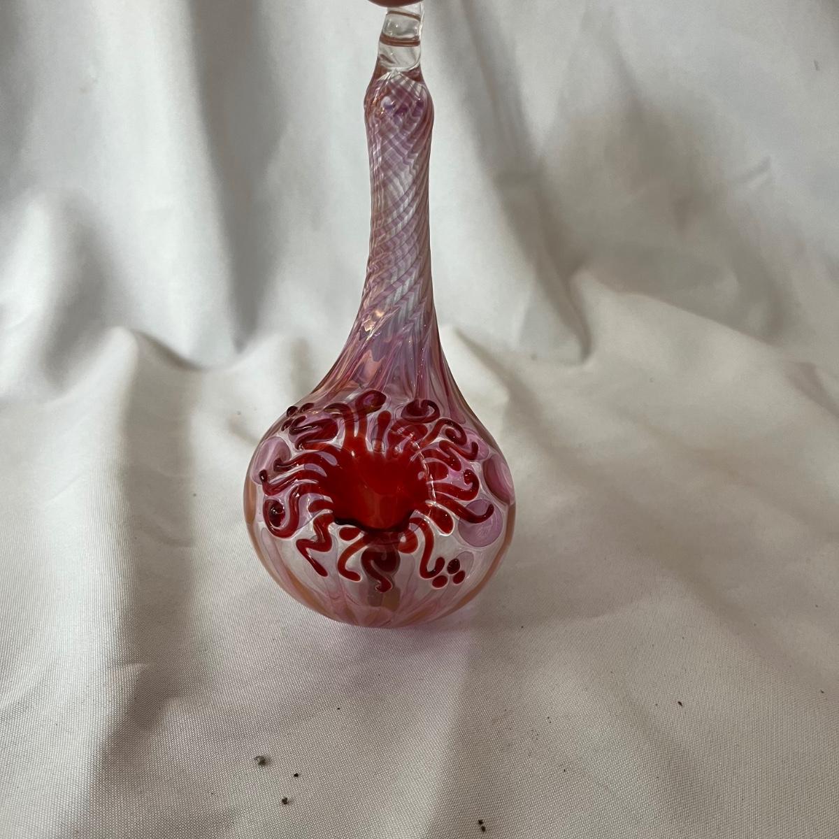 Lot includes two glass hanging hummingbird feeders and a copper and glass hanging hummingbird feeder that was made in Mexico and measures 12”D x 11”H.