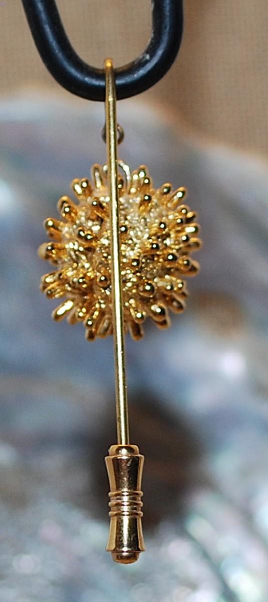 Hanging GOLD BURST BALL PIN (2½" L) with Pin Guard on a Gold Tone Setting