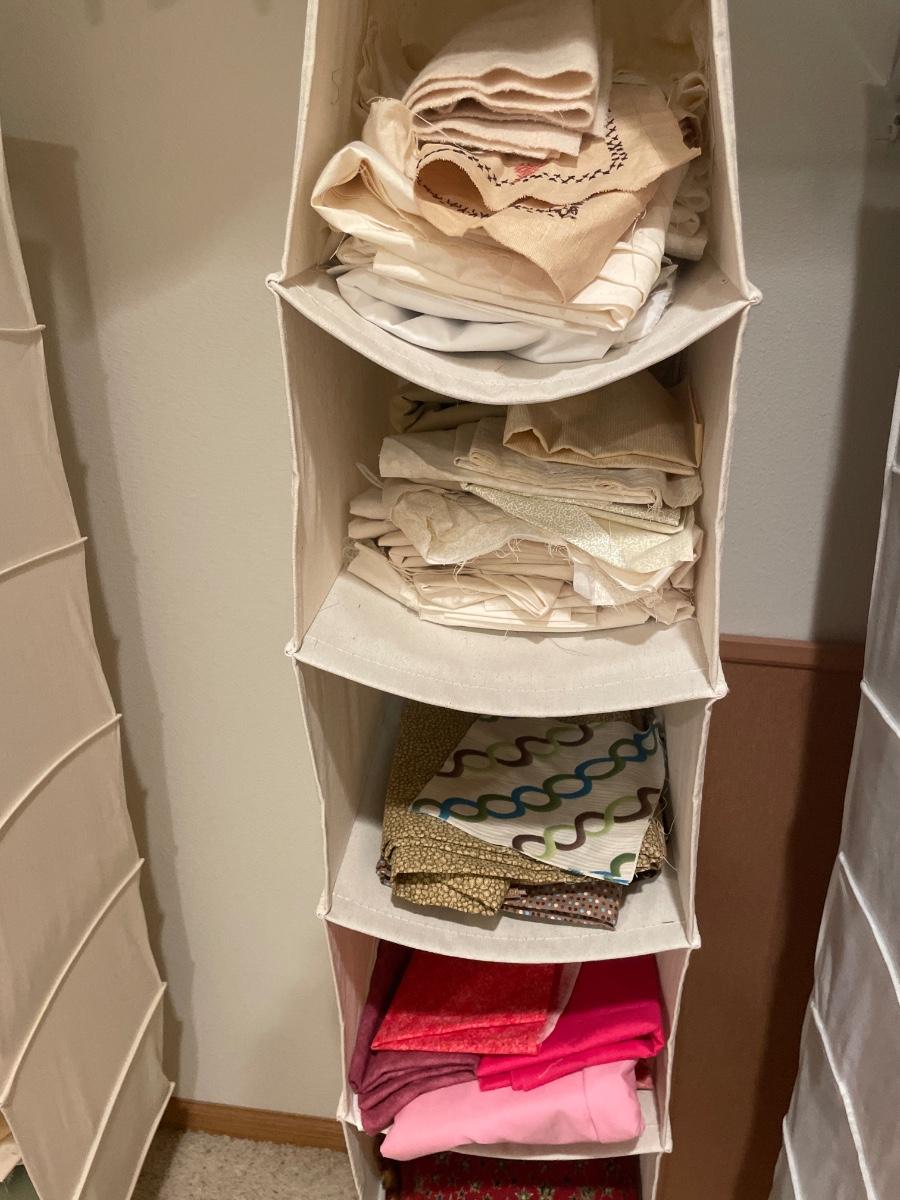Hanging organizer with cream and pink fabric one only