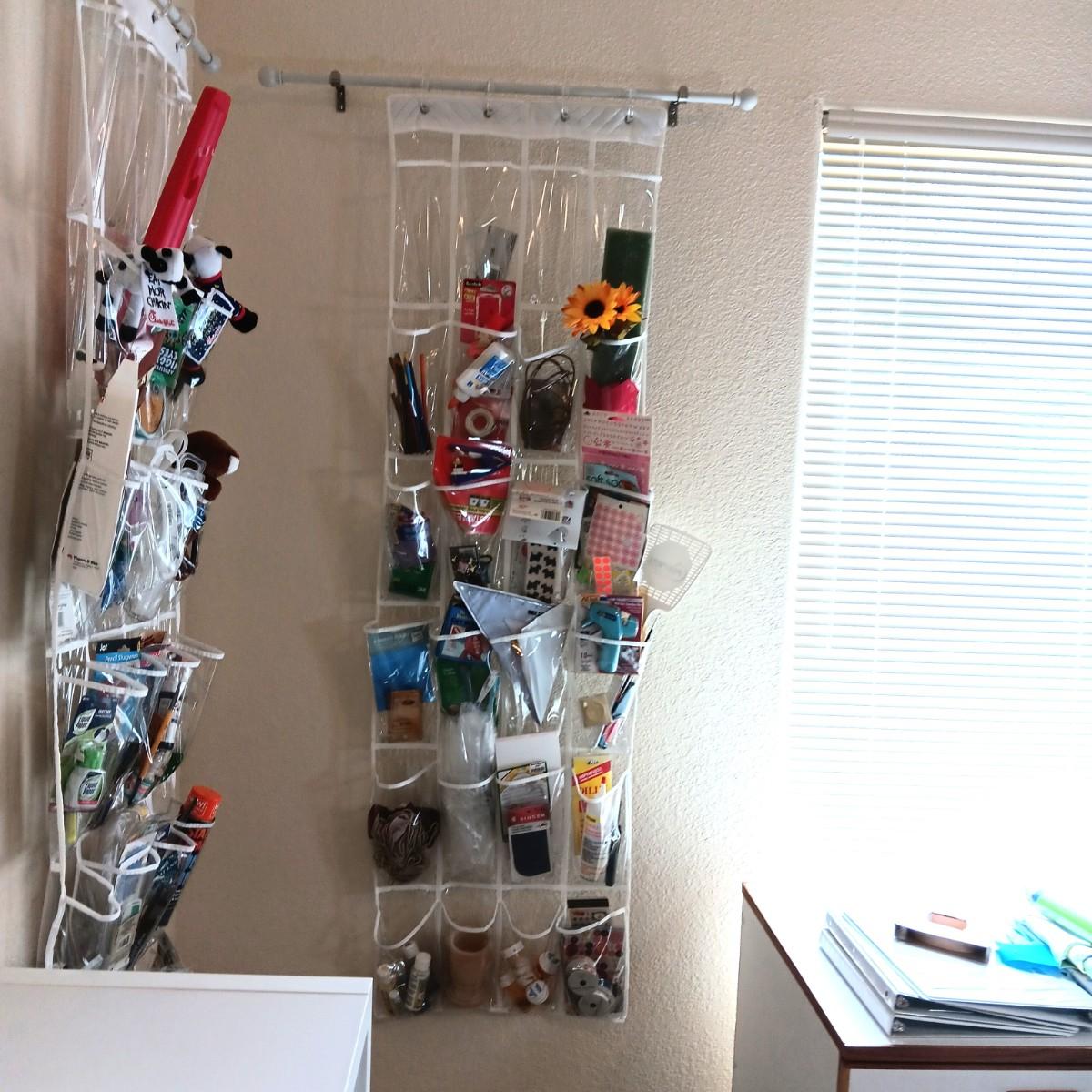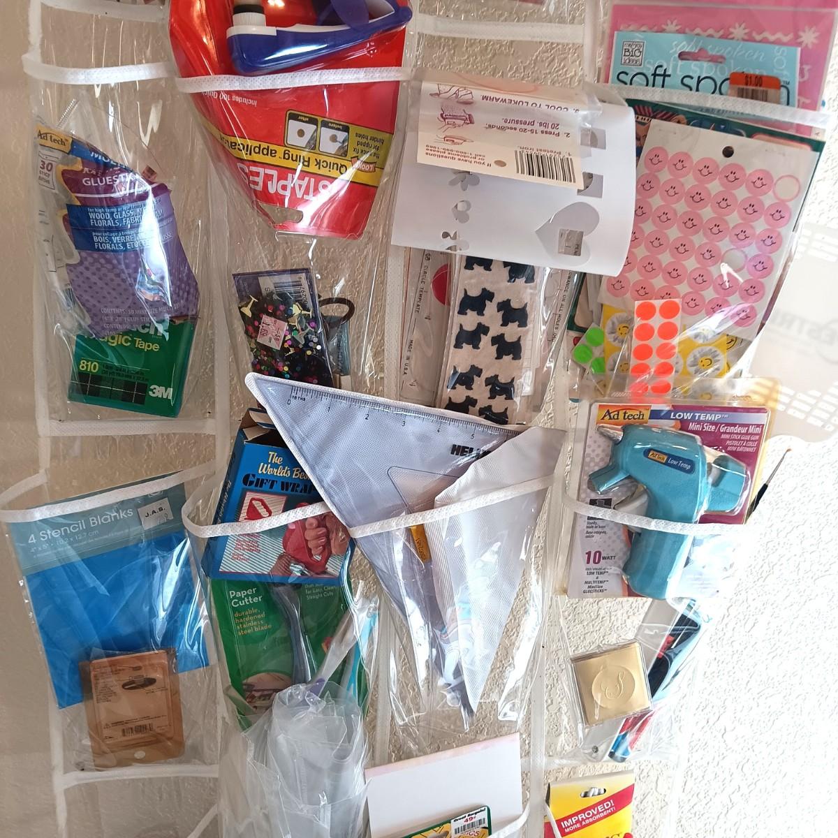 HANGING ORGANIZER FULL OF CRAFT AND SEWING SUPPLIES
