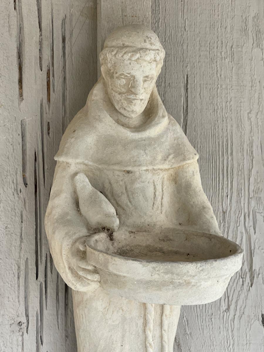Hanging Outdoor Cement Saint Francis Bird Feeder