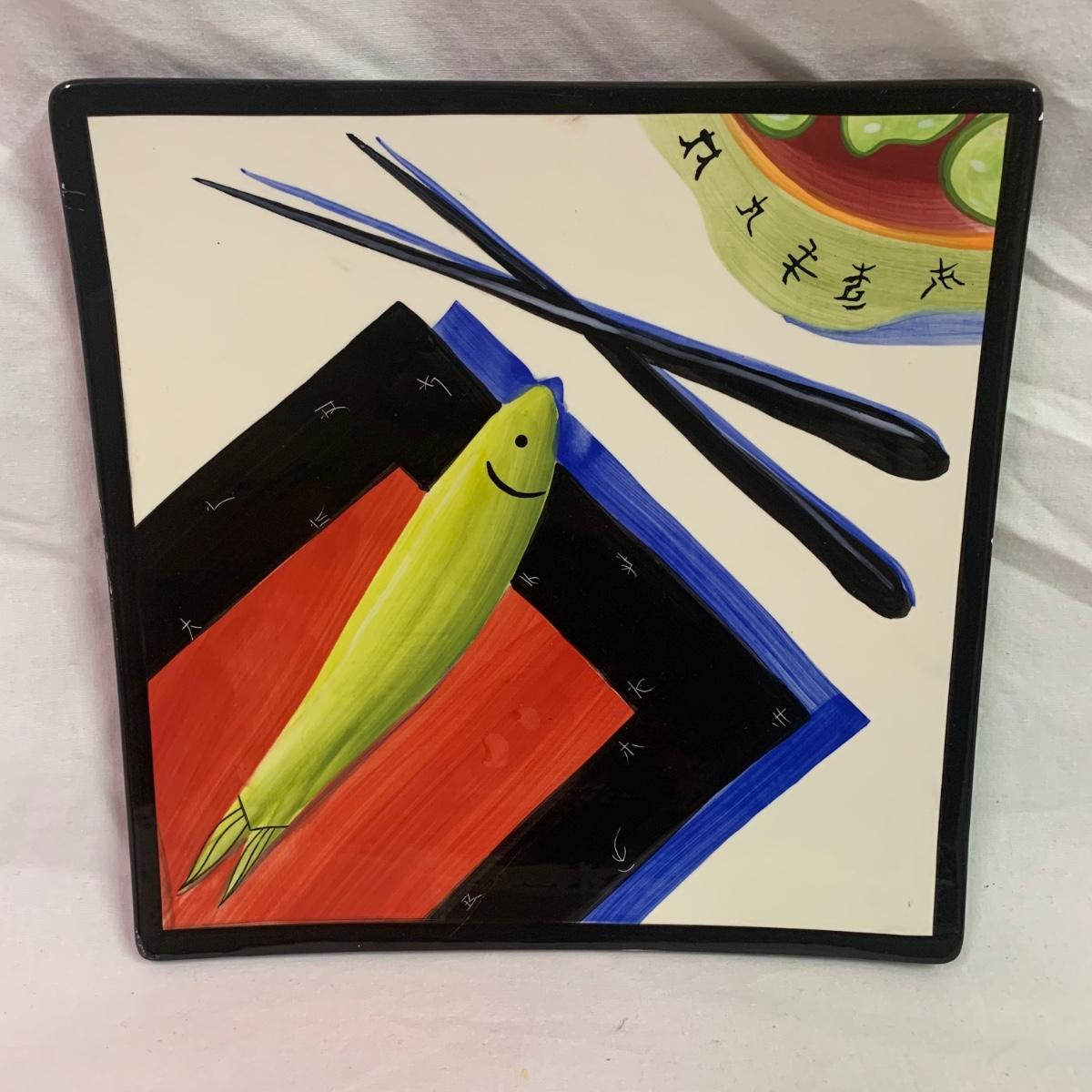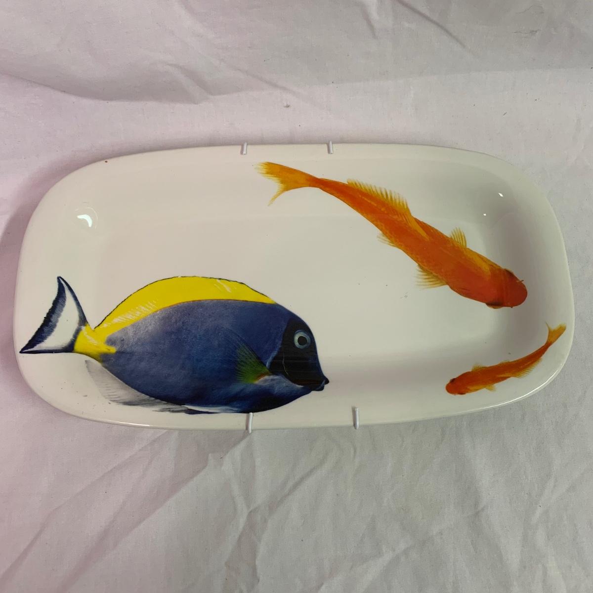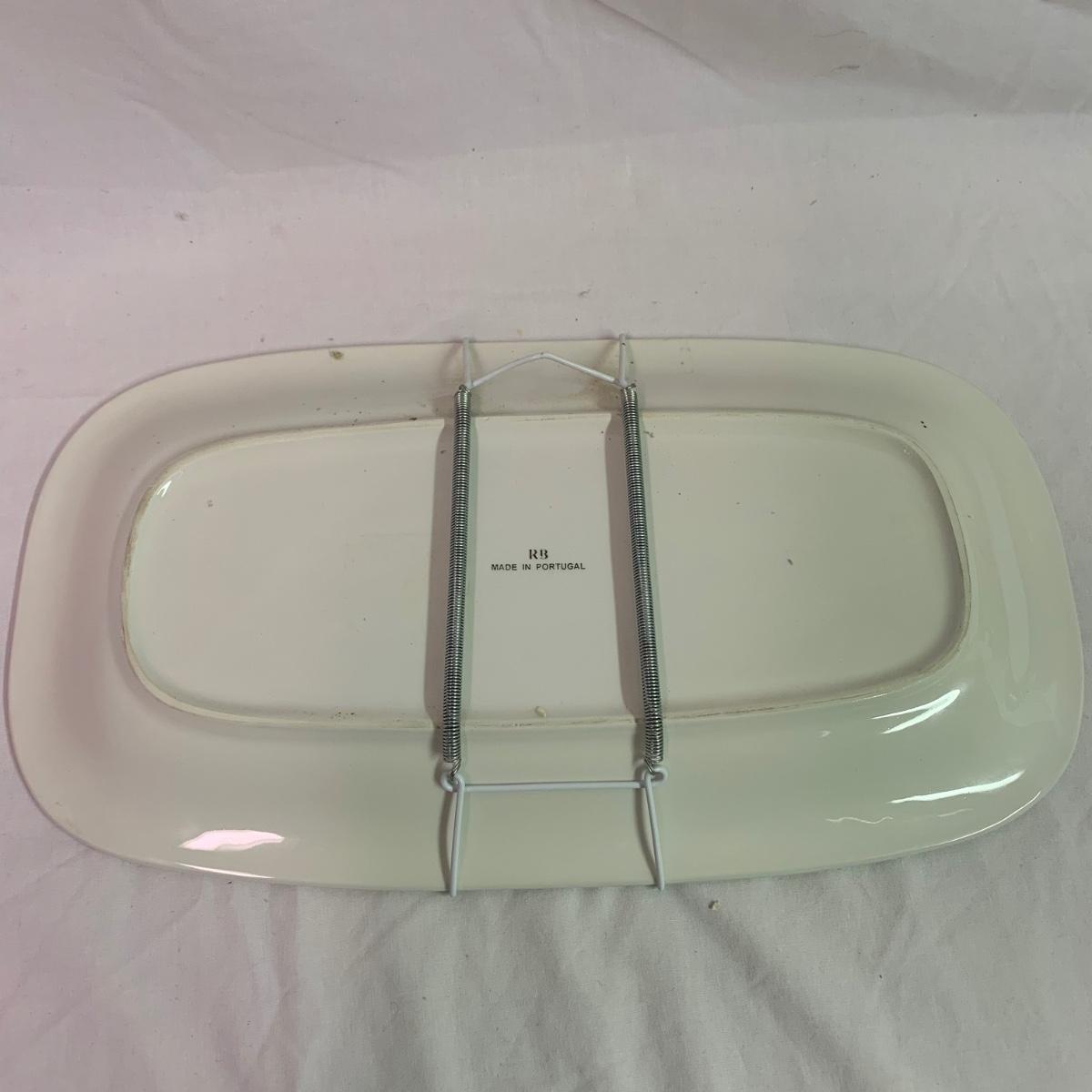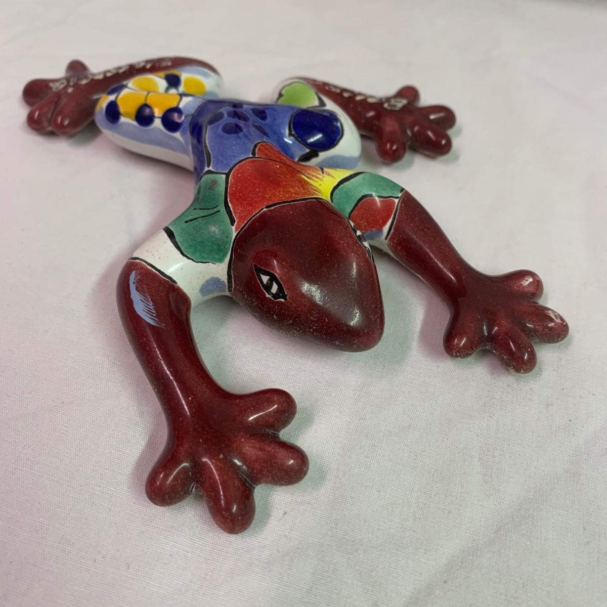 This lot includes two decorative hanging plates, one ceramic frog from Belize, and one adorable basket with painted ceramic fish handles. Fish-handled basket measures 16” x 8.5” x 7”H. Please see photos for more details. Shipping available.