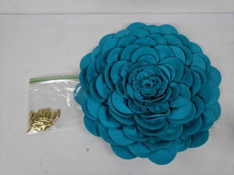 Hanging Teal Felt Flower Wall Decor w/ Small Clips To Hold Pictures