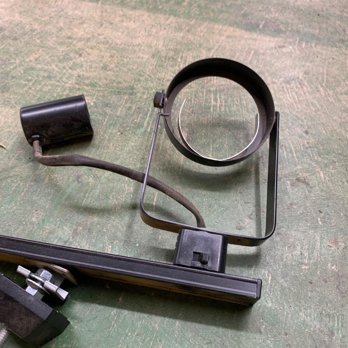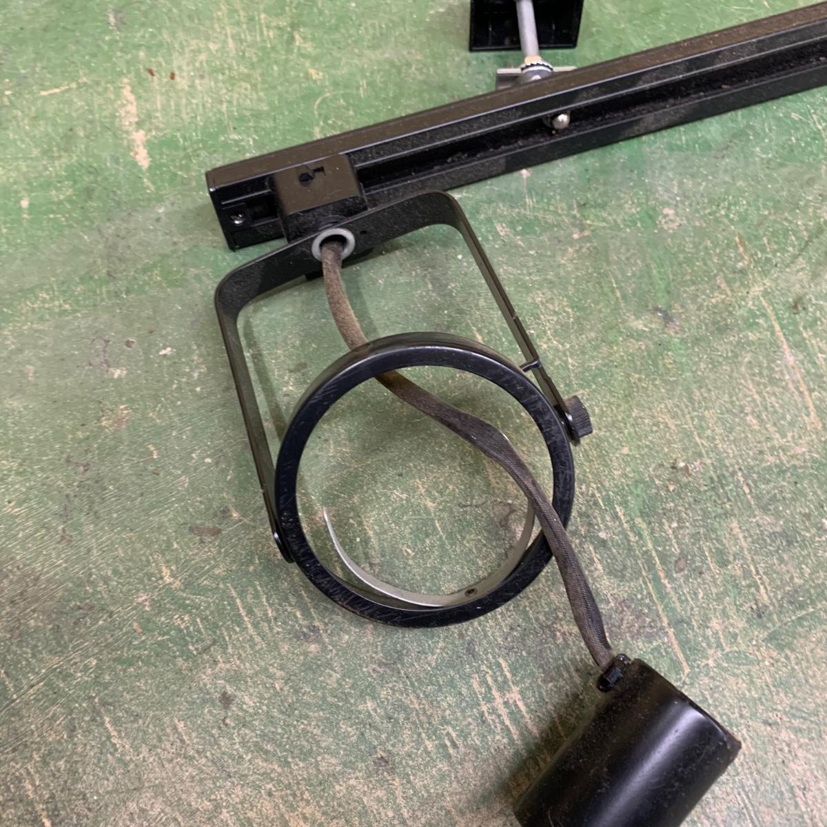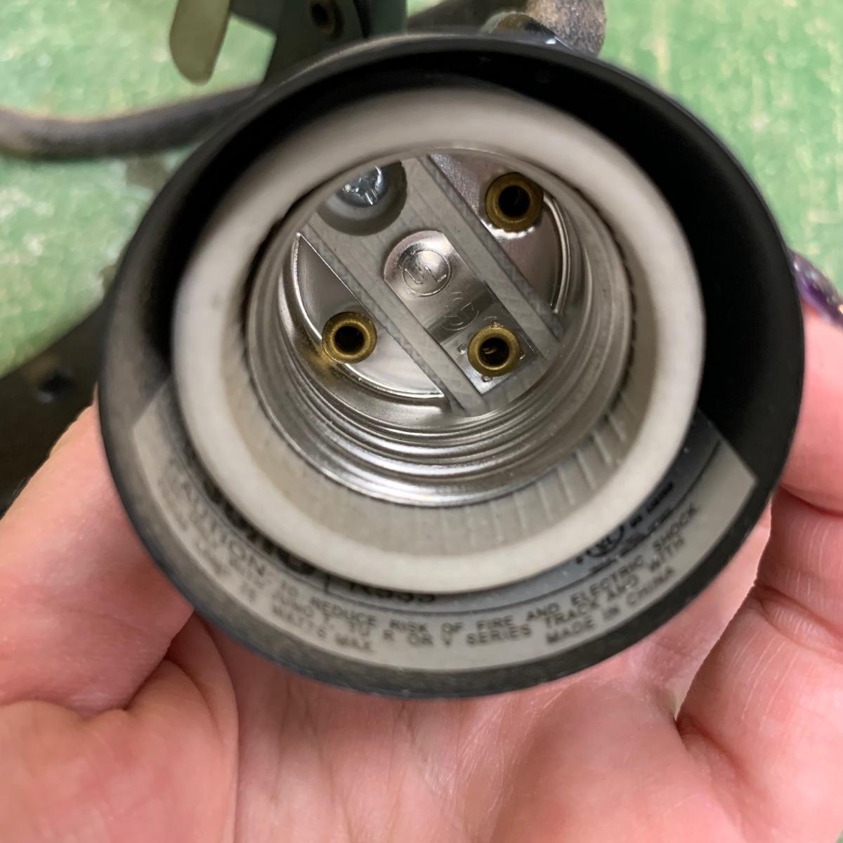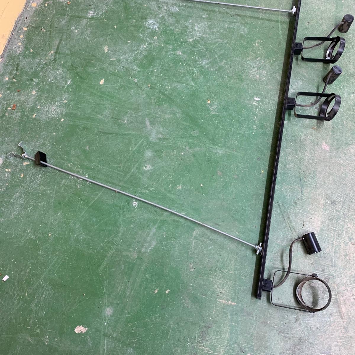 This track light fixture has three solid metal poles that attach to the ceiling for the fixture to hang. It has the capacity for six lights. It has pivoting swivel light heads. The fixture is black metal. It is about 96” (8ft) long. The hanging poles measure approximately 37” long. The fixture is a bit dusty and it would benefit from a good cleaning. We are unable to test this item, but previous owner confirmed that it functioned when it last was in use. Local pickup only.