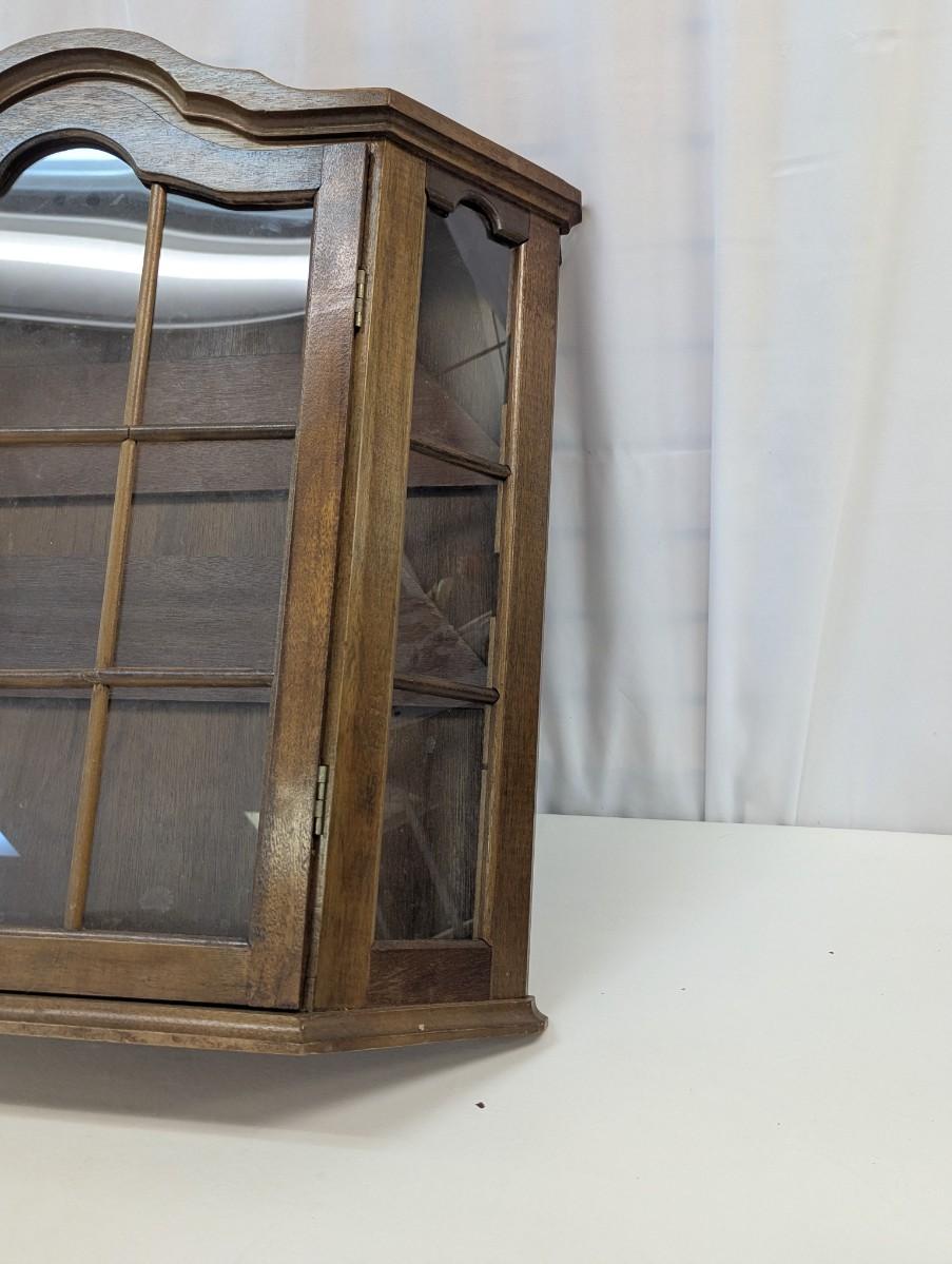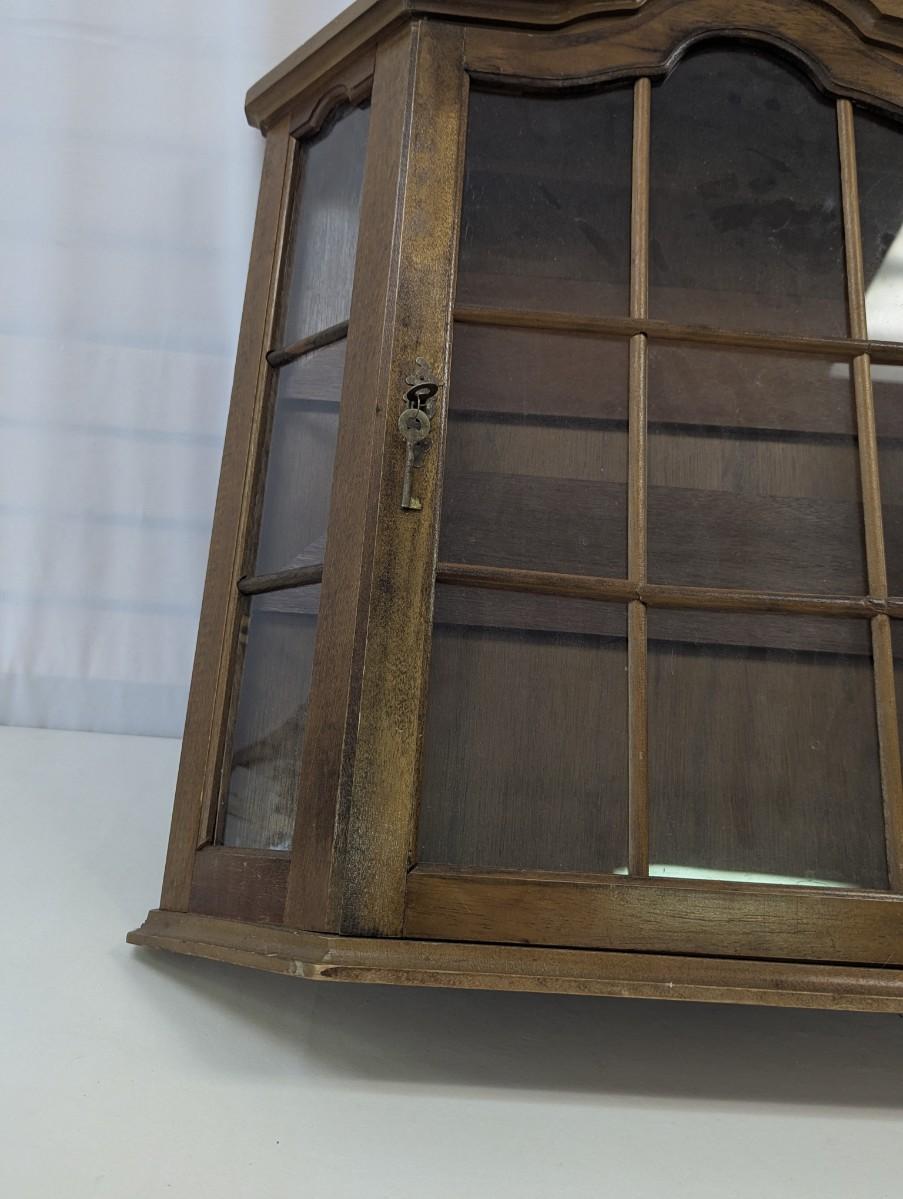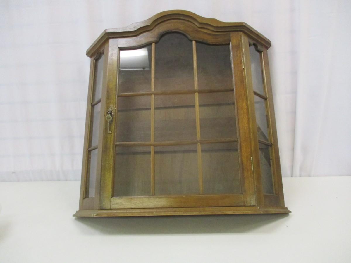 Hanging Wall Wooden Display Cabinet With Key & Wood Shelves