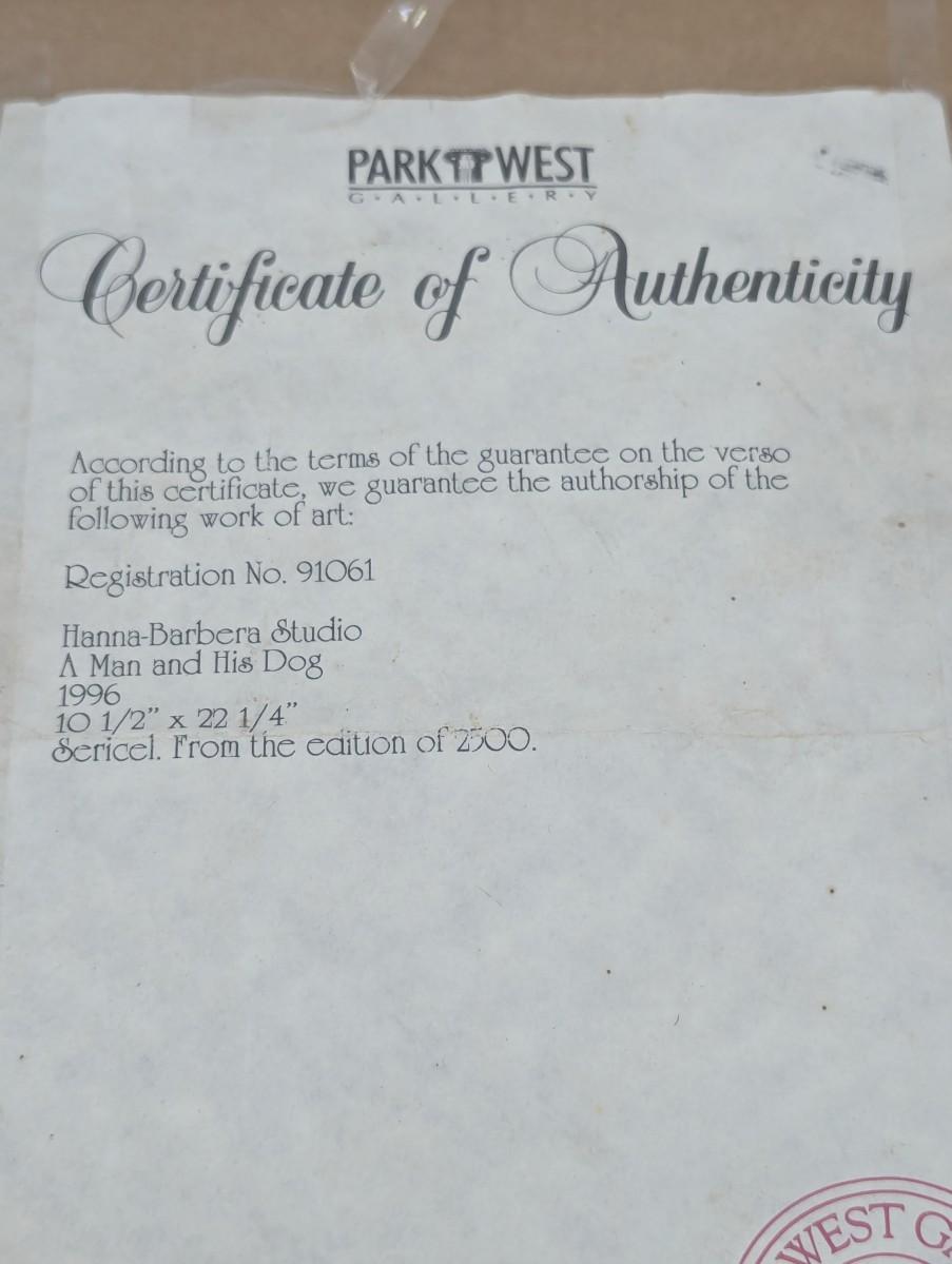 Hanna-Barbera "A Man And His Dog" 22 1/ 4" x 10 3/4" COA