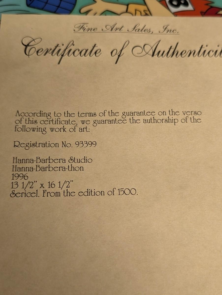 Rare LE Animation Art Hanna-Barbera-thon 13 1/2" x 16 1/2" w/ COA Sani-Cel