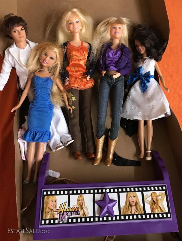 Lot of Hannah Montana dolls in played with condition.