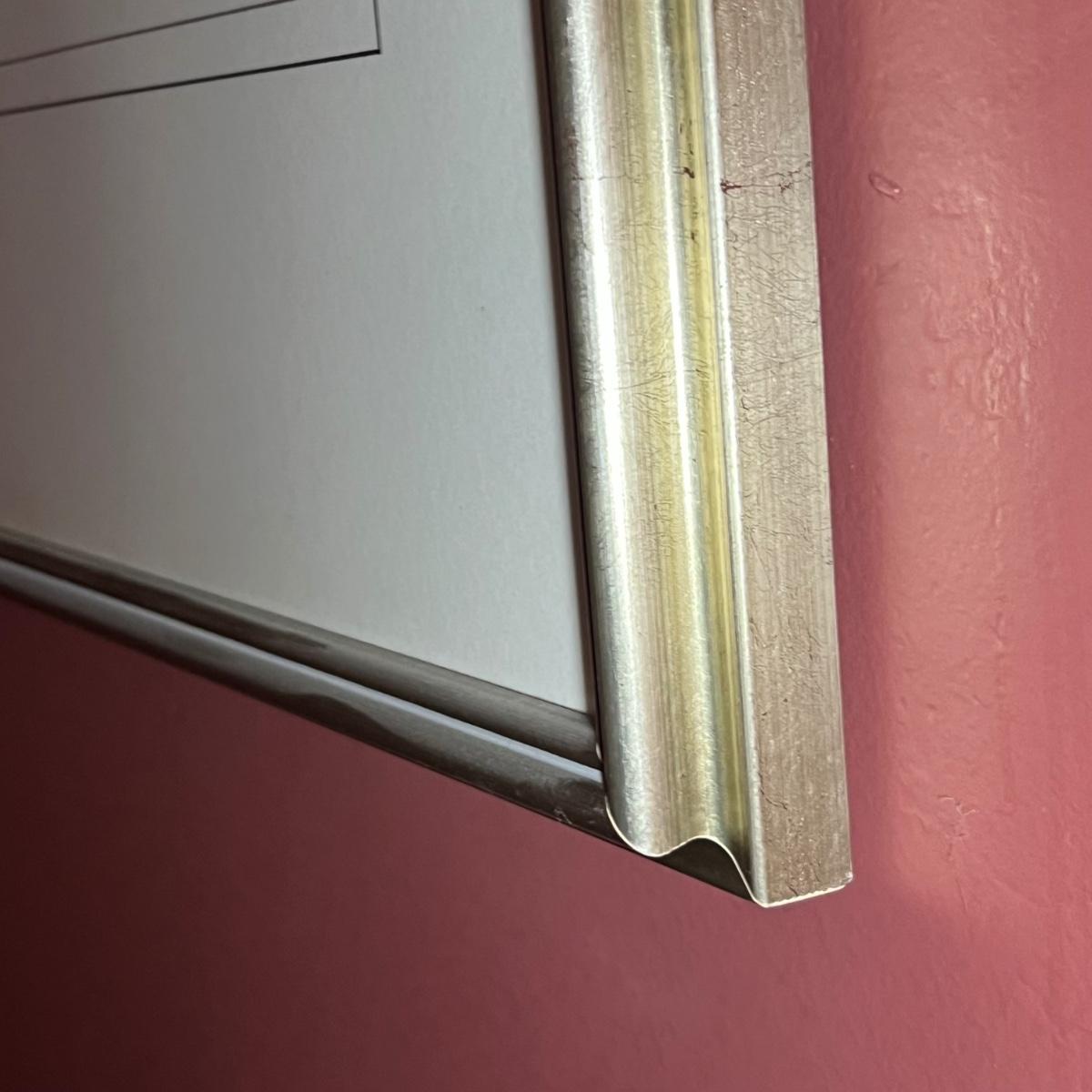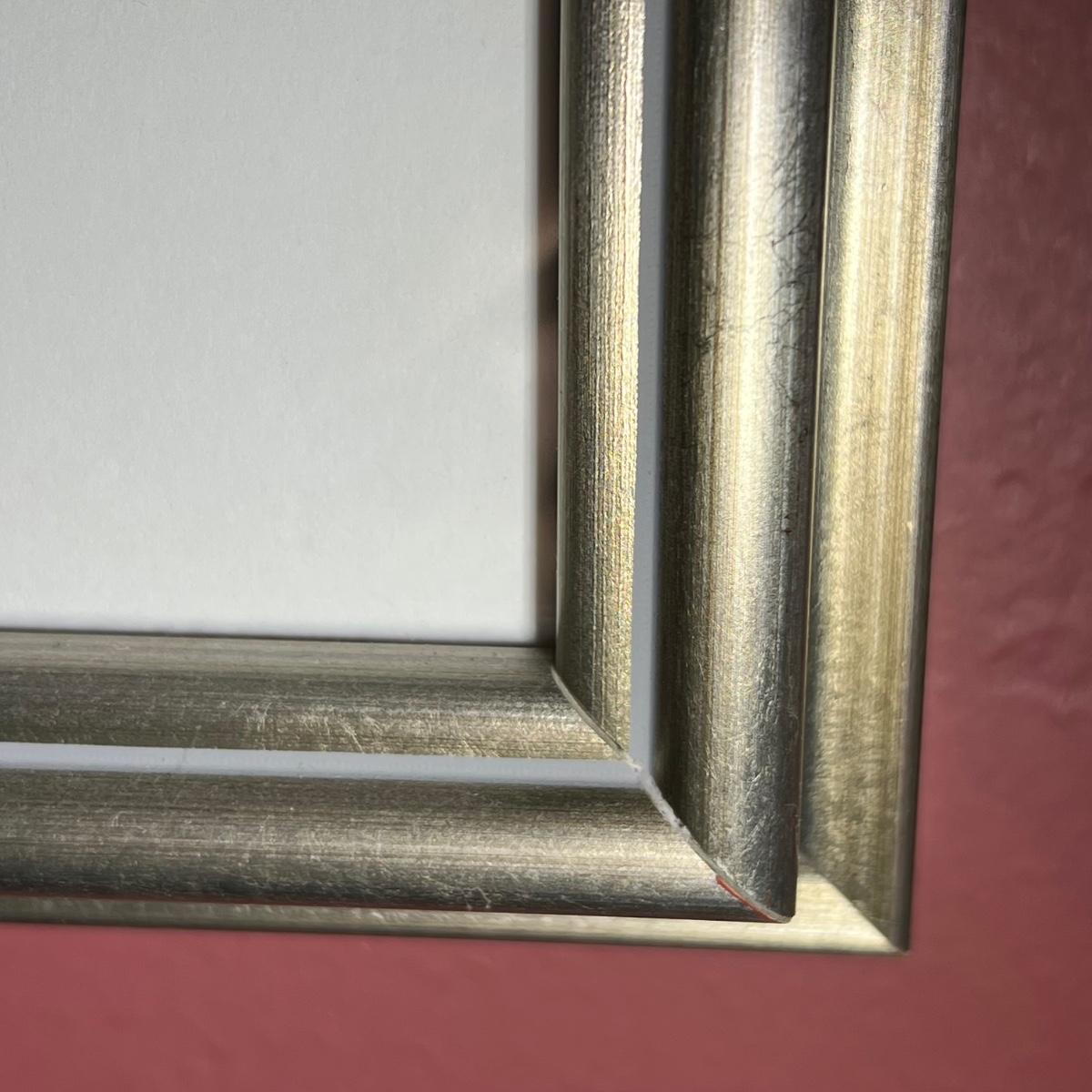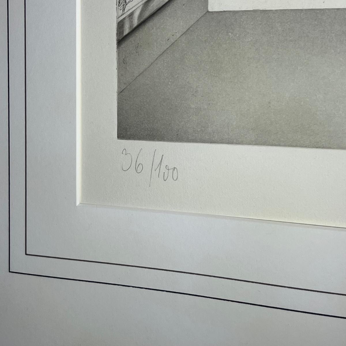 This signed print is number 36/100 and pencil signed. Under glass, matted and mounted in a silver composite frame.