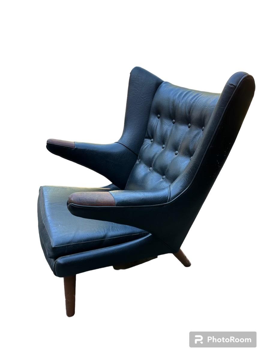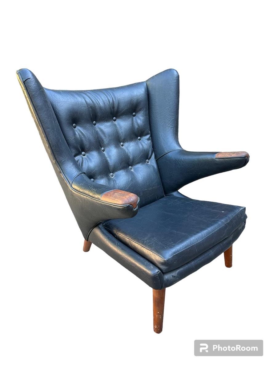 Classic Beauty Mid Century danish chair designed by Hans J. Wegner for A.P. Stolen Model AP19 circa 1951 Denmark. Has some Cat claw pricks on the back left and right lower sides of the chair.