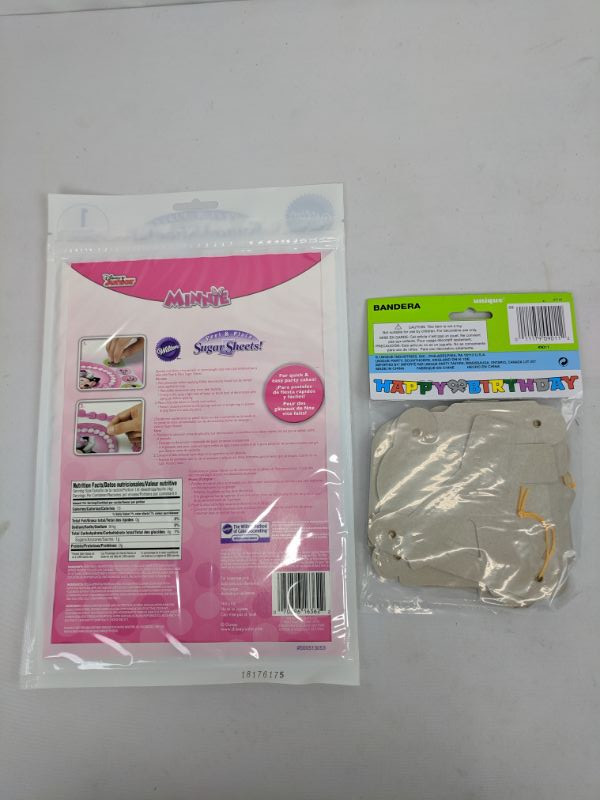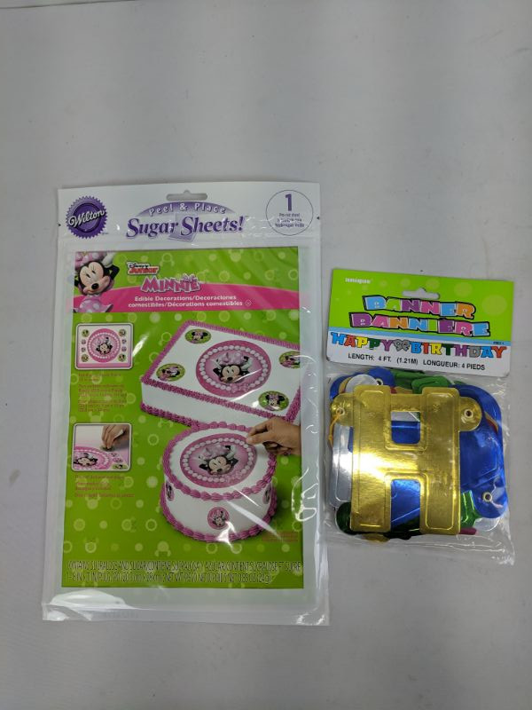Happy Birthday Banner 4FT & Peel & Place Sugar Sheets, Minnie Mouse - New