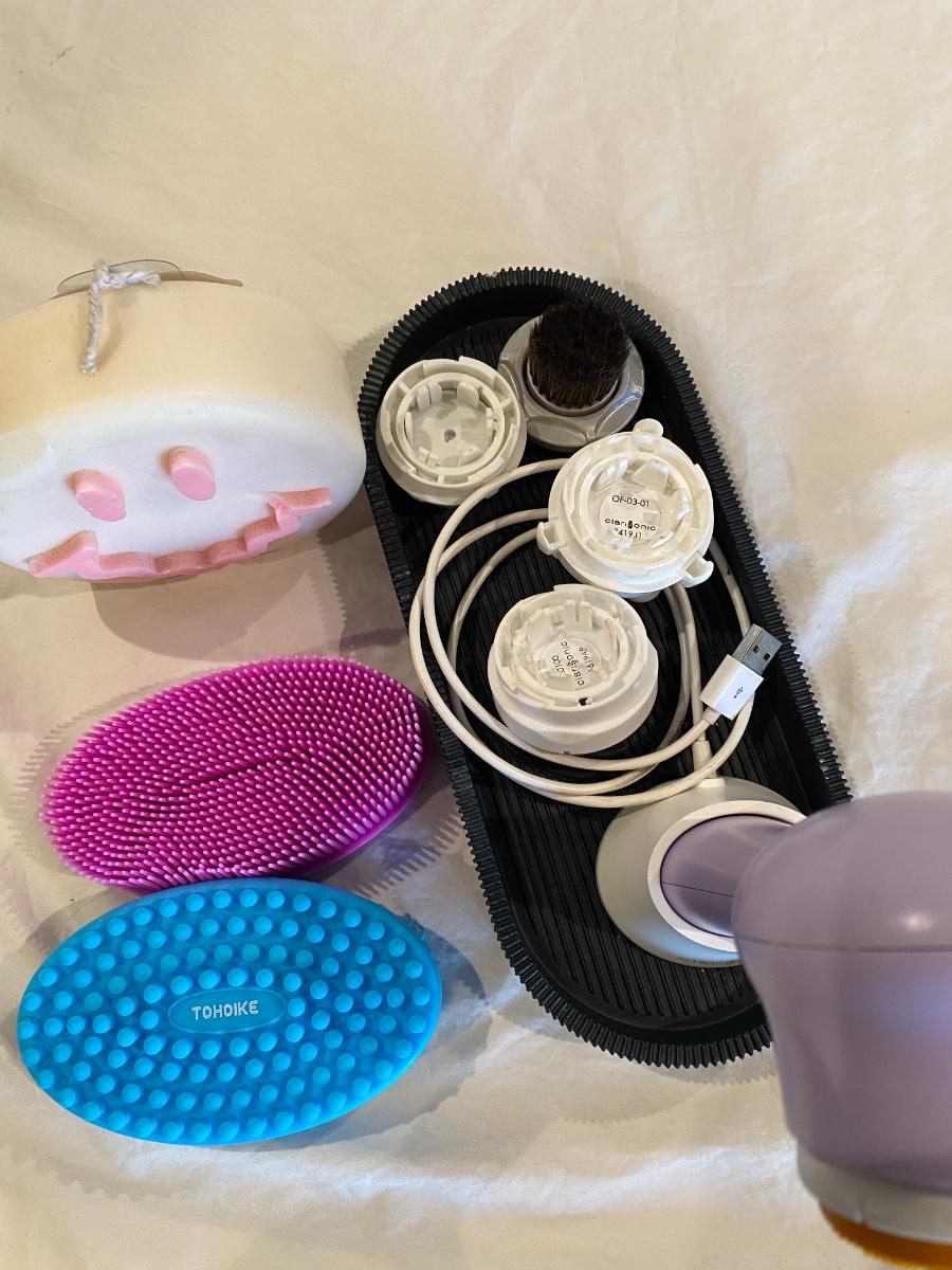 Clarisonic facial skin cleansing brush system, 2 tdhdike brushes AND a happy face candle.