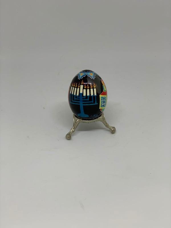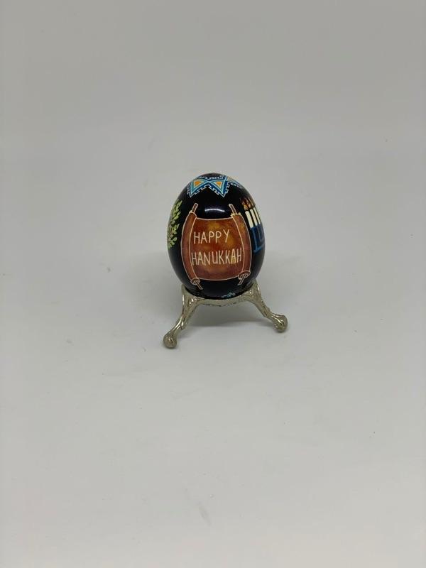 Happy Hanukkah lacquer egg with stand. Shipping available for extra cost.