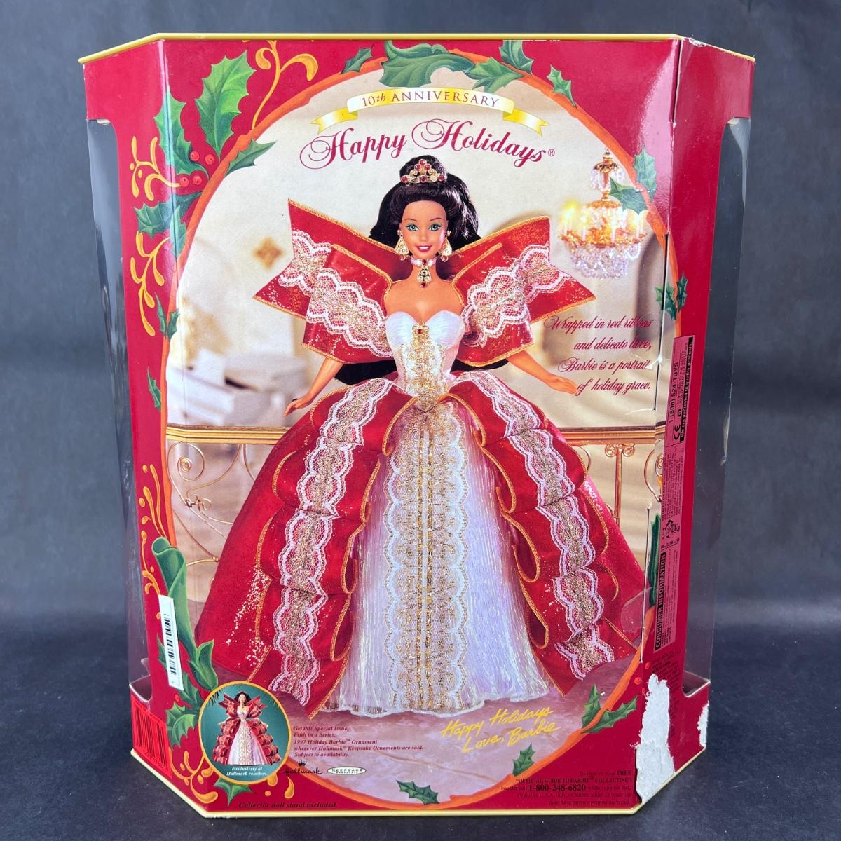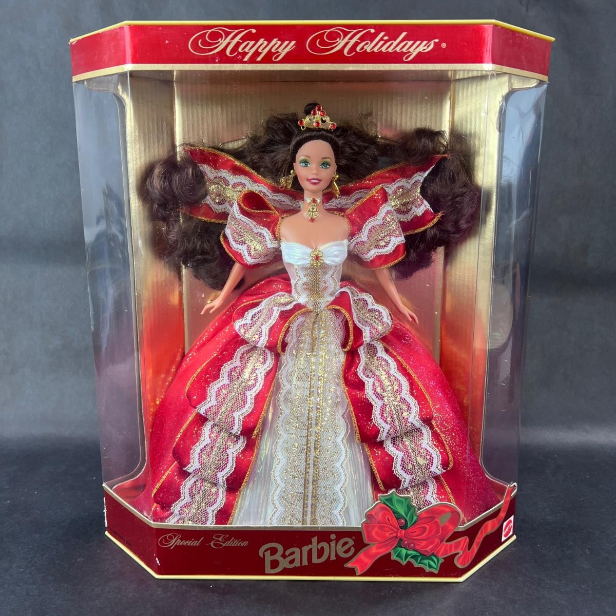 Happy Holidays Barbie looked so festive in 1997! This doll was produced in 1997 by Mattel to celebrate the Holiday Season. This doll has not been out of its box. The box does have damage. **|** Please see photos for details and condition. ::: Shipping is available on this lot. If you require shipping you must let us know at the close of the auction. We will coordinate with you after the item has been won. Shipping fees will include insurance up to or exceeding the value of all items being mailed. If you have any questions regarding this lot please contact the auctioneer either via this website, by direct email or by phone. PICK UP TIMES and other important information can be found in the TERMS and DESCRIPTION of the auction. Please take a look for pertinent information. Thanks!