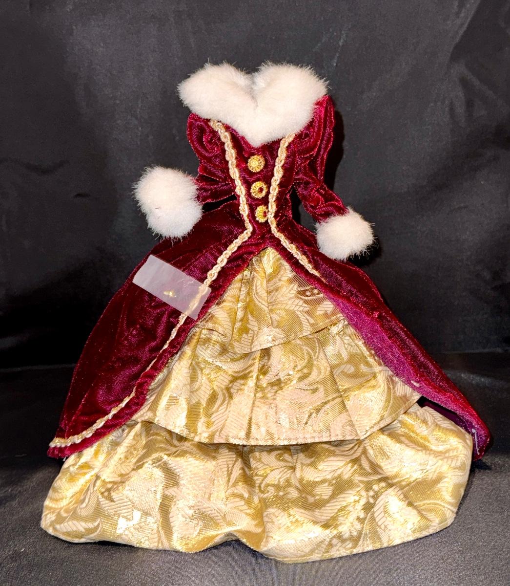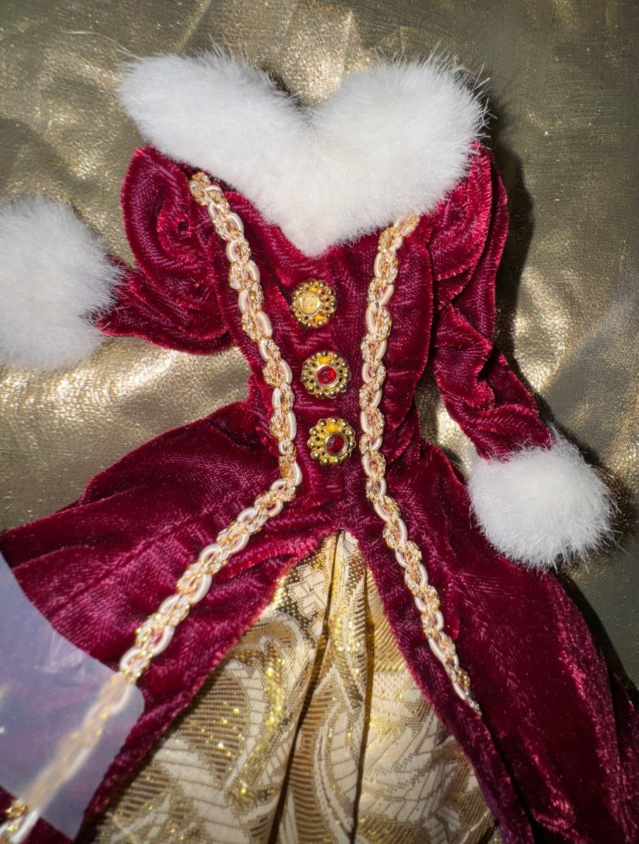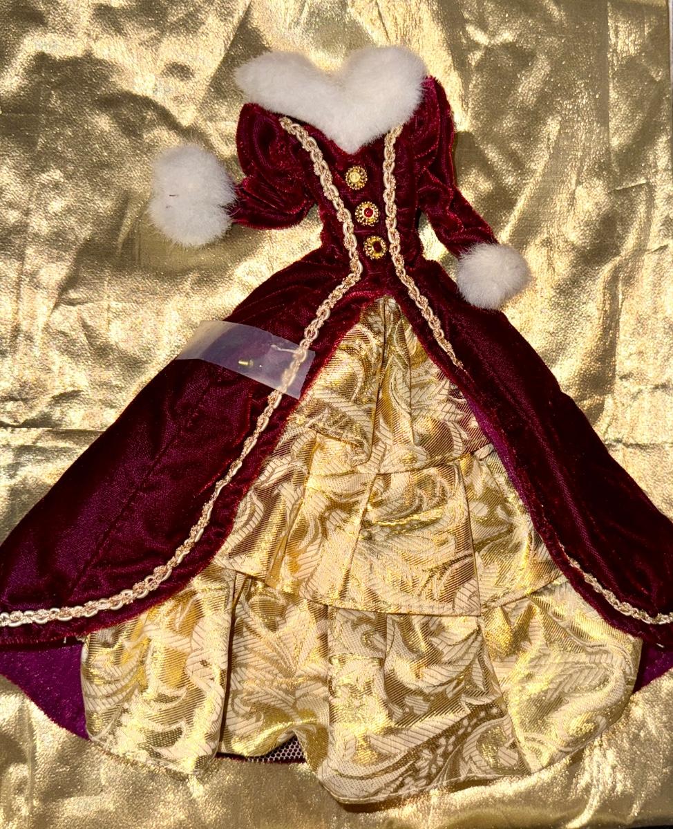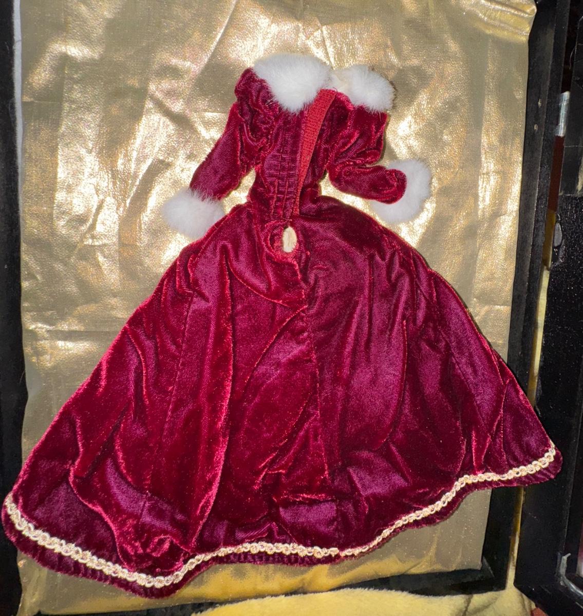 Happy Holidays Barbie Burgundy Velvet Dress & Gold Ring