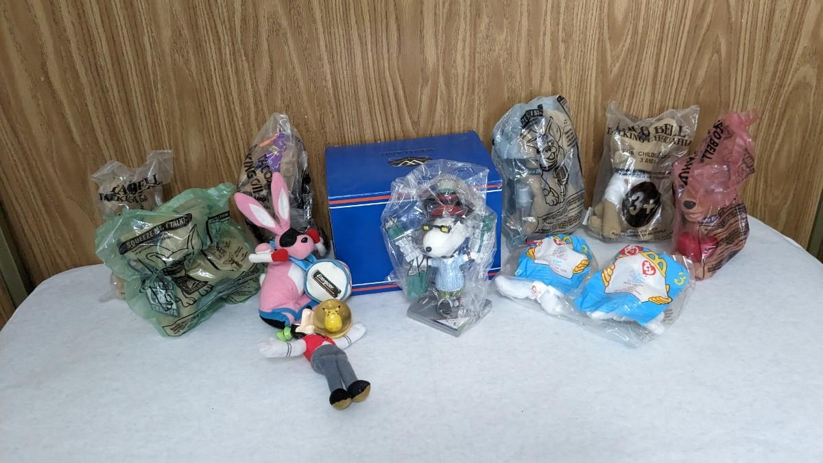 includes 6 Taco Bell chihuahua, all but 2 work, Westland "On the Town" in original box, Flip the Cat x2, and more! bdrm2