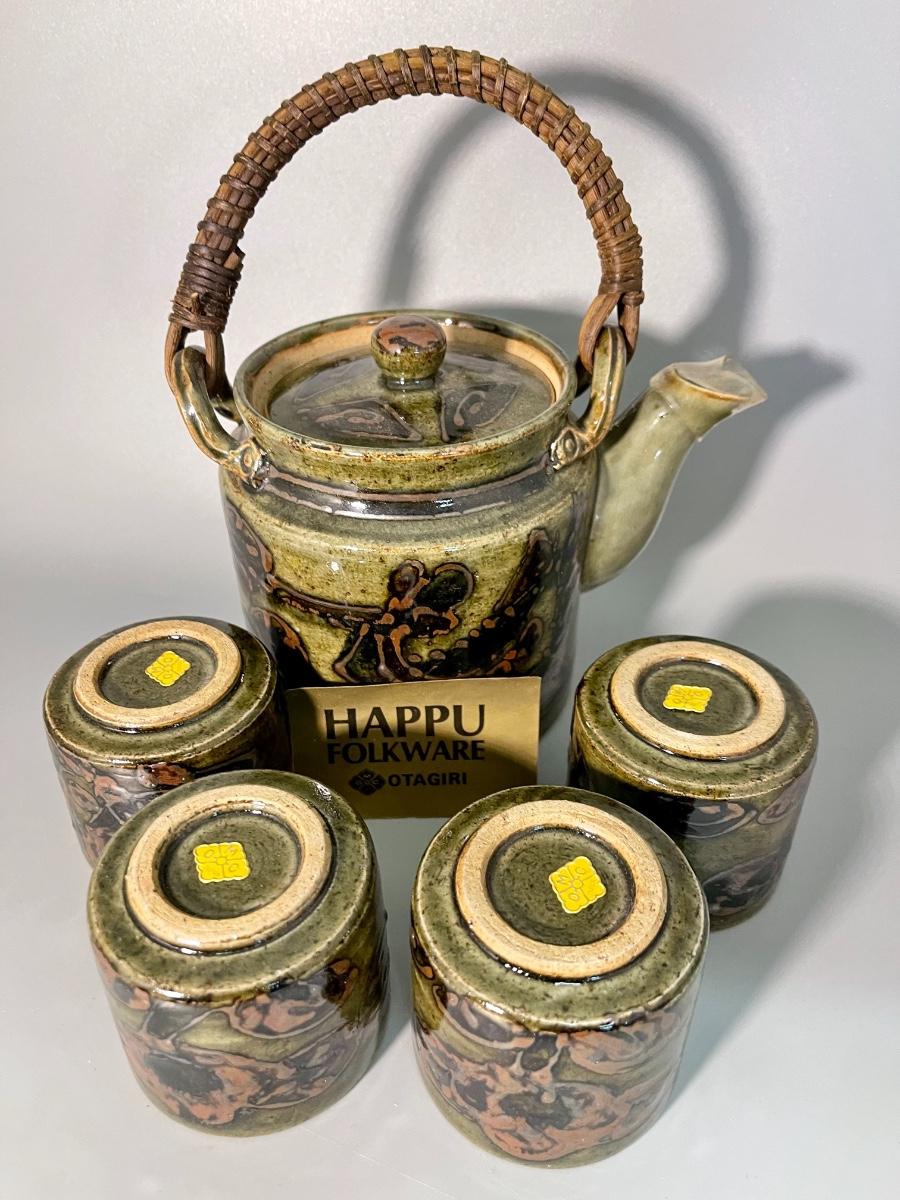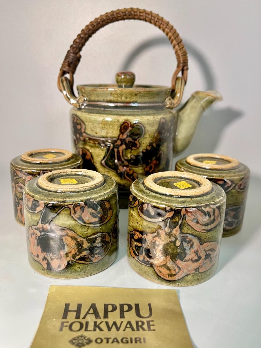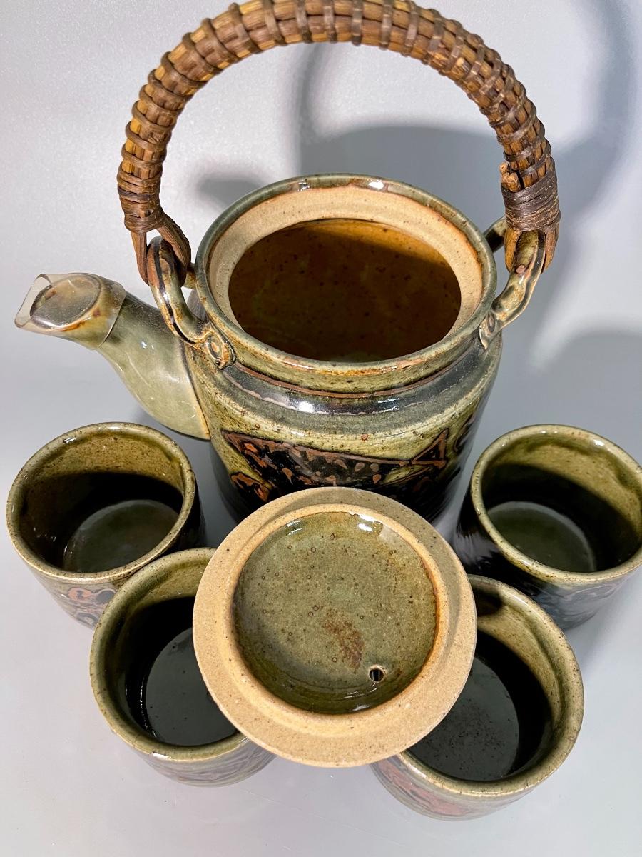 Great vintage stoneware set would add a great pop to your kitchen or rustic space. I do not think this set has been used,