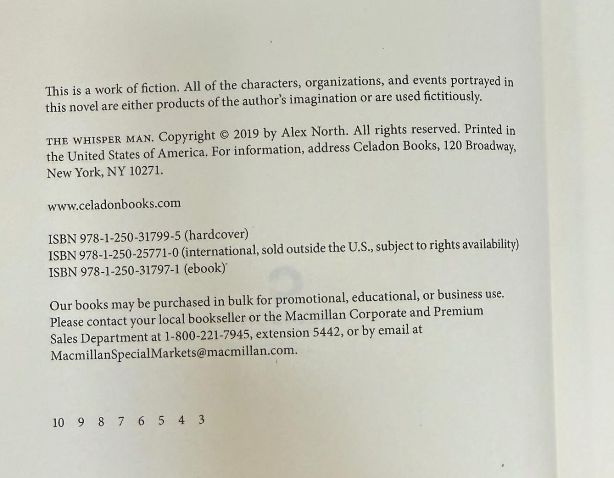 Very good condition. Novel about a serial killer called the Whisper Man.