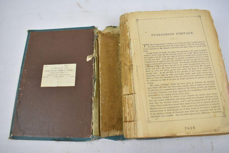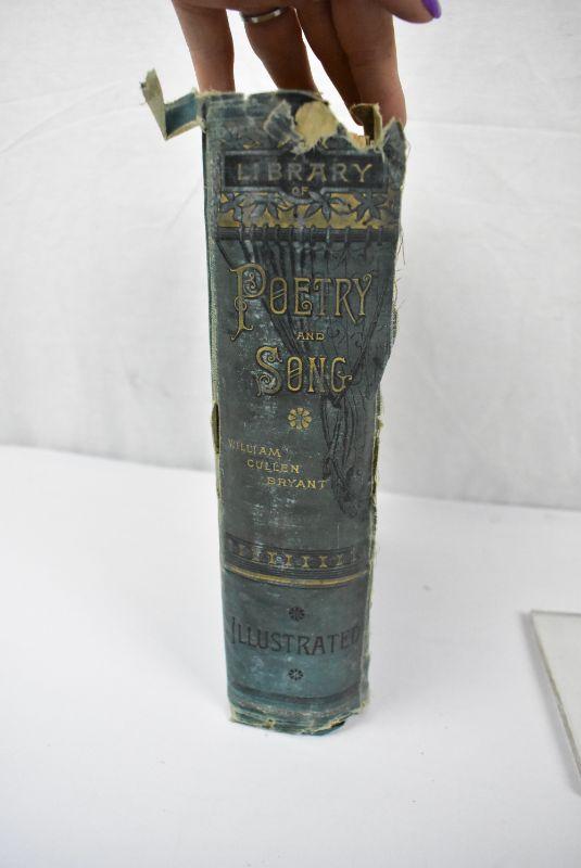 Hardcover Book "A Library of Poetry and Song" Illustrated. Fragile/Needs Repairs. 942 Pages. Antique 1876?