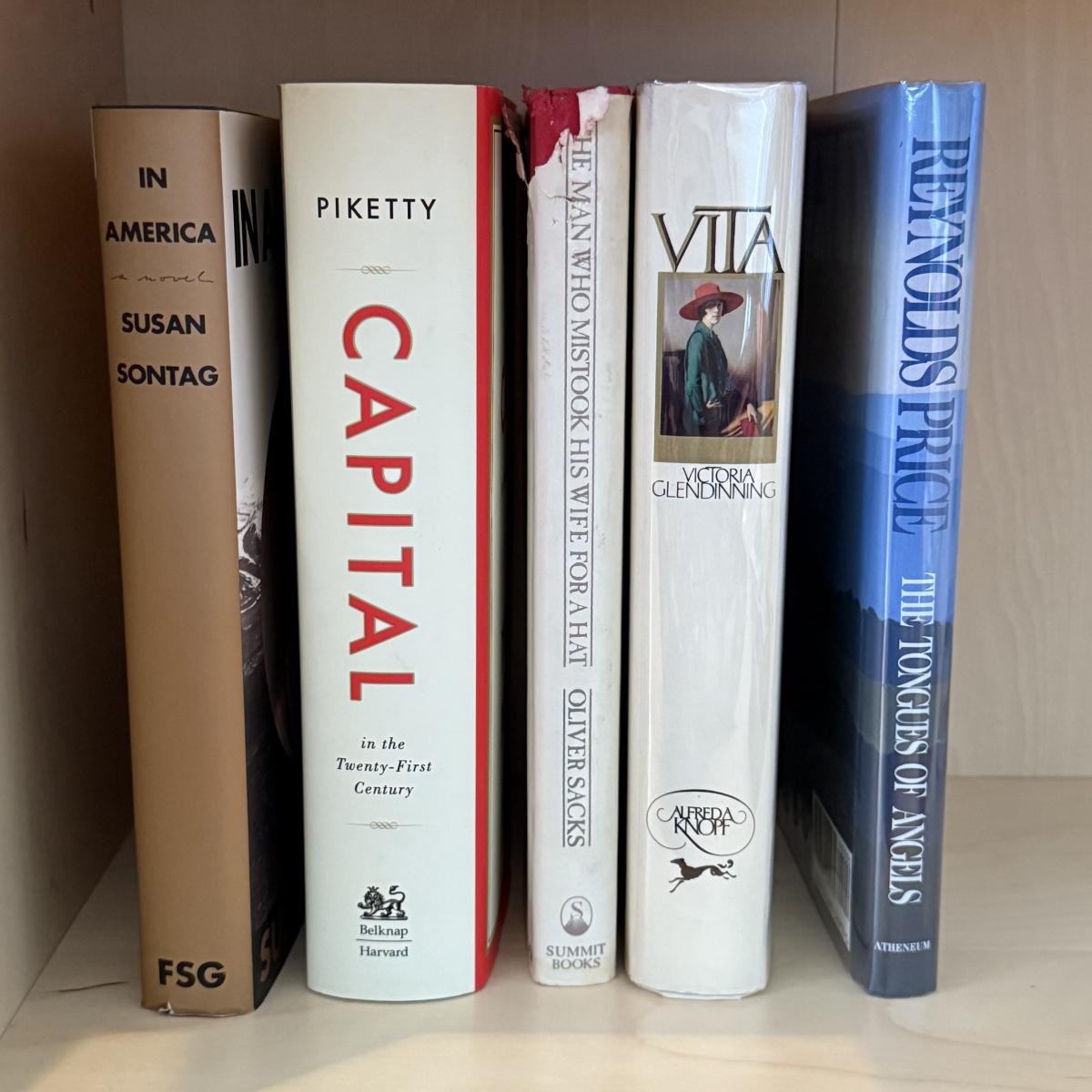 A collection of 28 hardcover fiction novels and biographies. Includes “The Goldfinch” by Donna Tartt, “The Lacuna” by Barbara Kingsolver, “The Help” by Kathryn Stockett, and many more! Many are first editions, plus two are autographed: “In Memory of Junior” by Clyde Edgerton and “The Tiger in the Attic” by Edith Milton. Please see photos for inventory and condition.