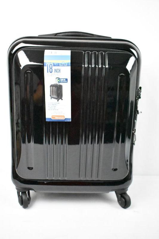 Hardside Carry On Suitcase, Black w/ Combo Lock & Spinner Wheels - New