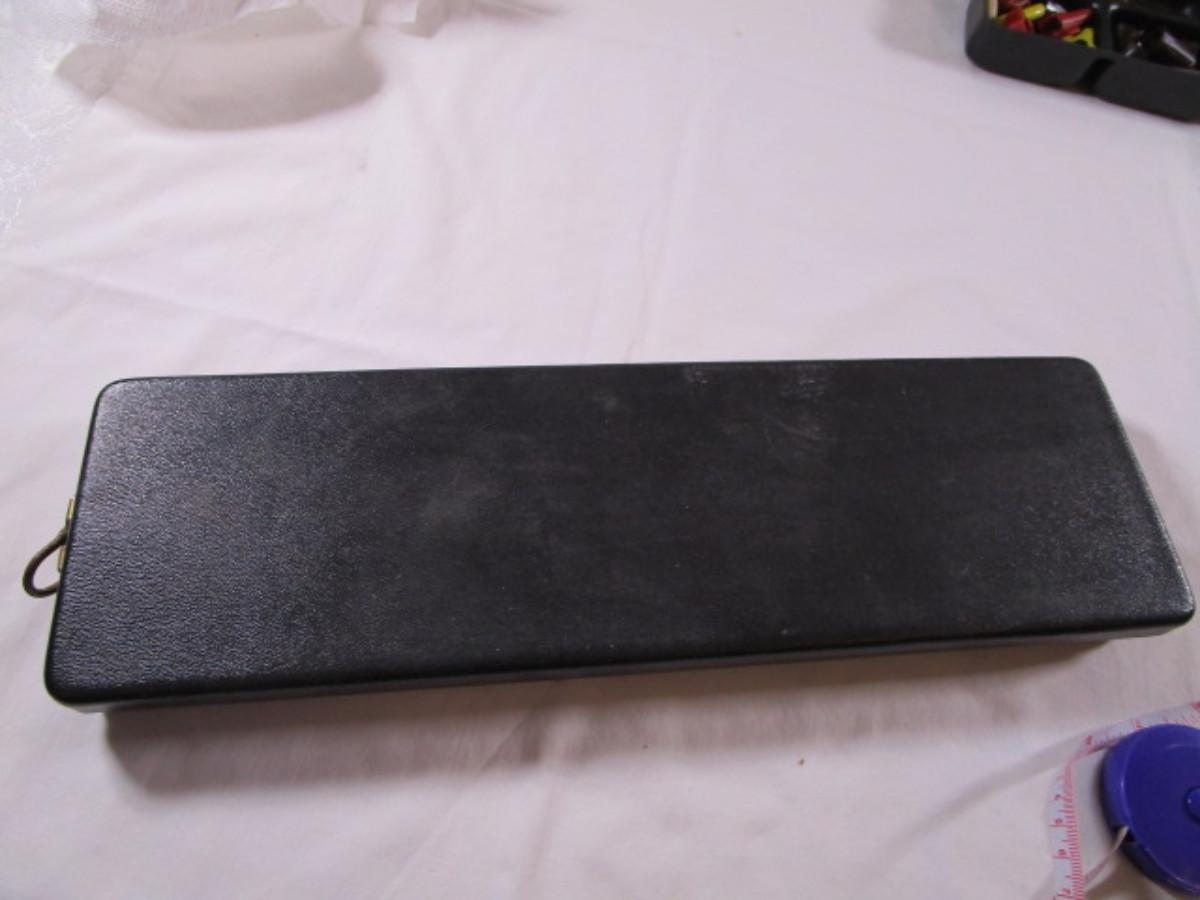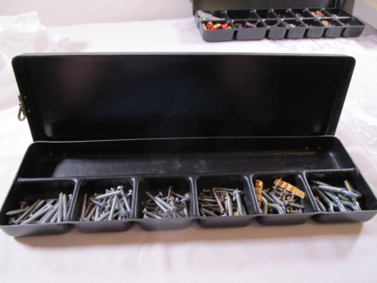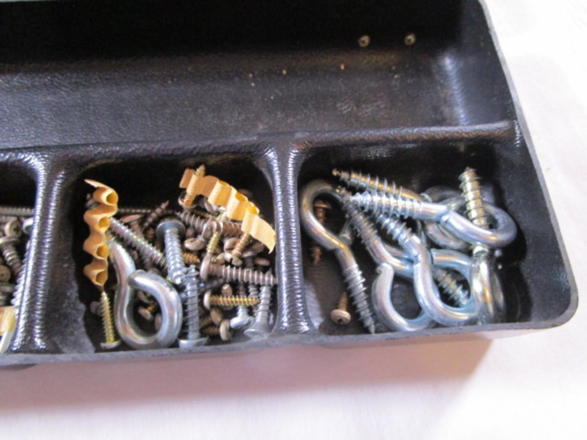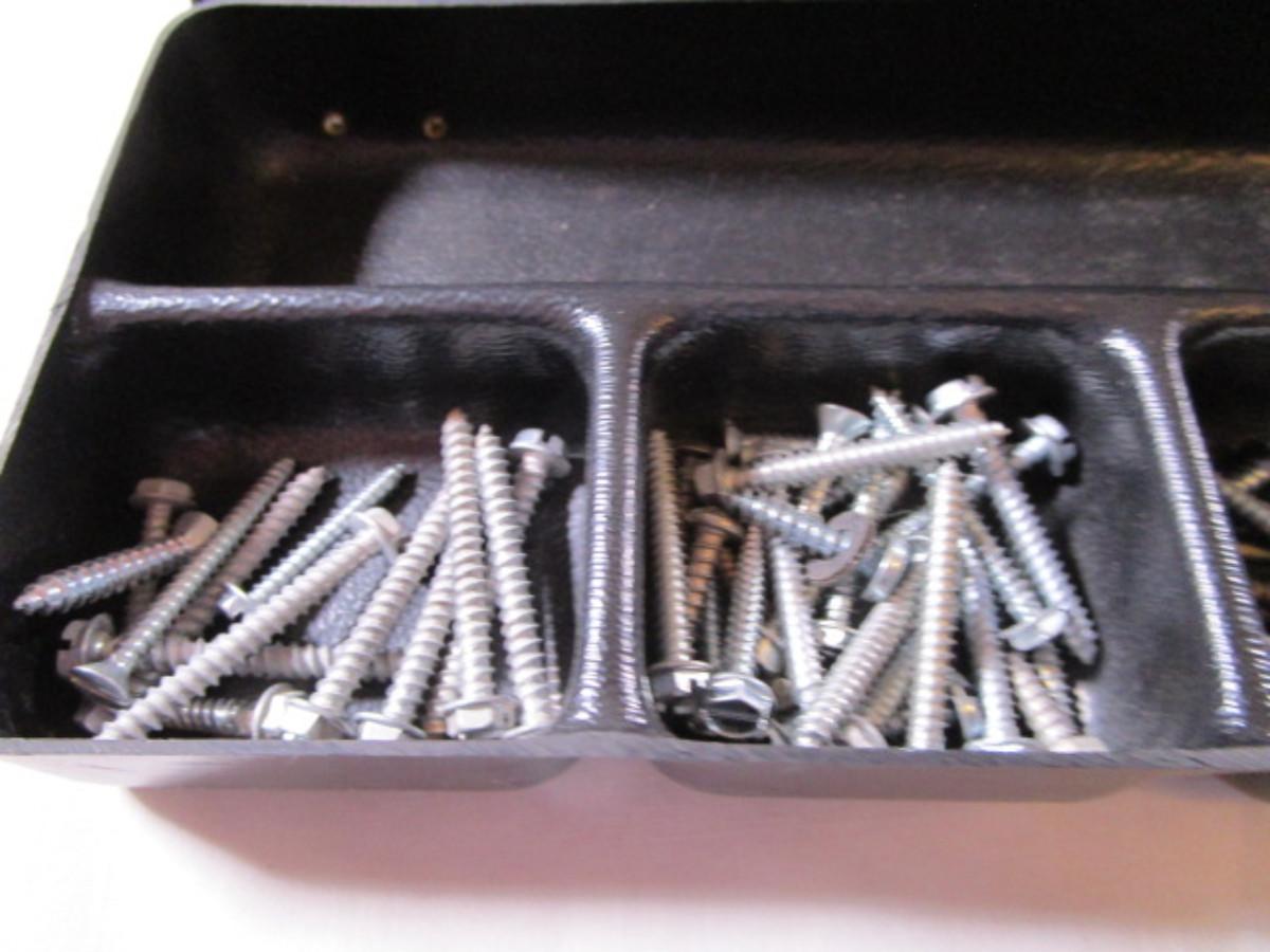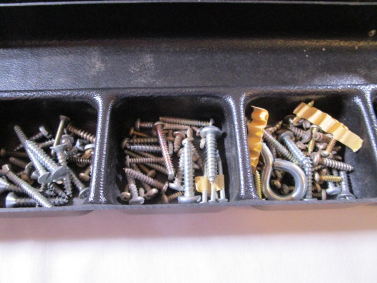 assorted screws, case is 14" long x 4-1/8" wide x 1" tall